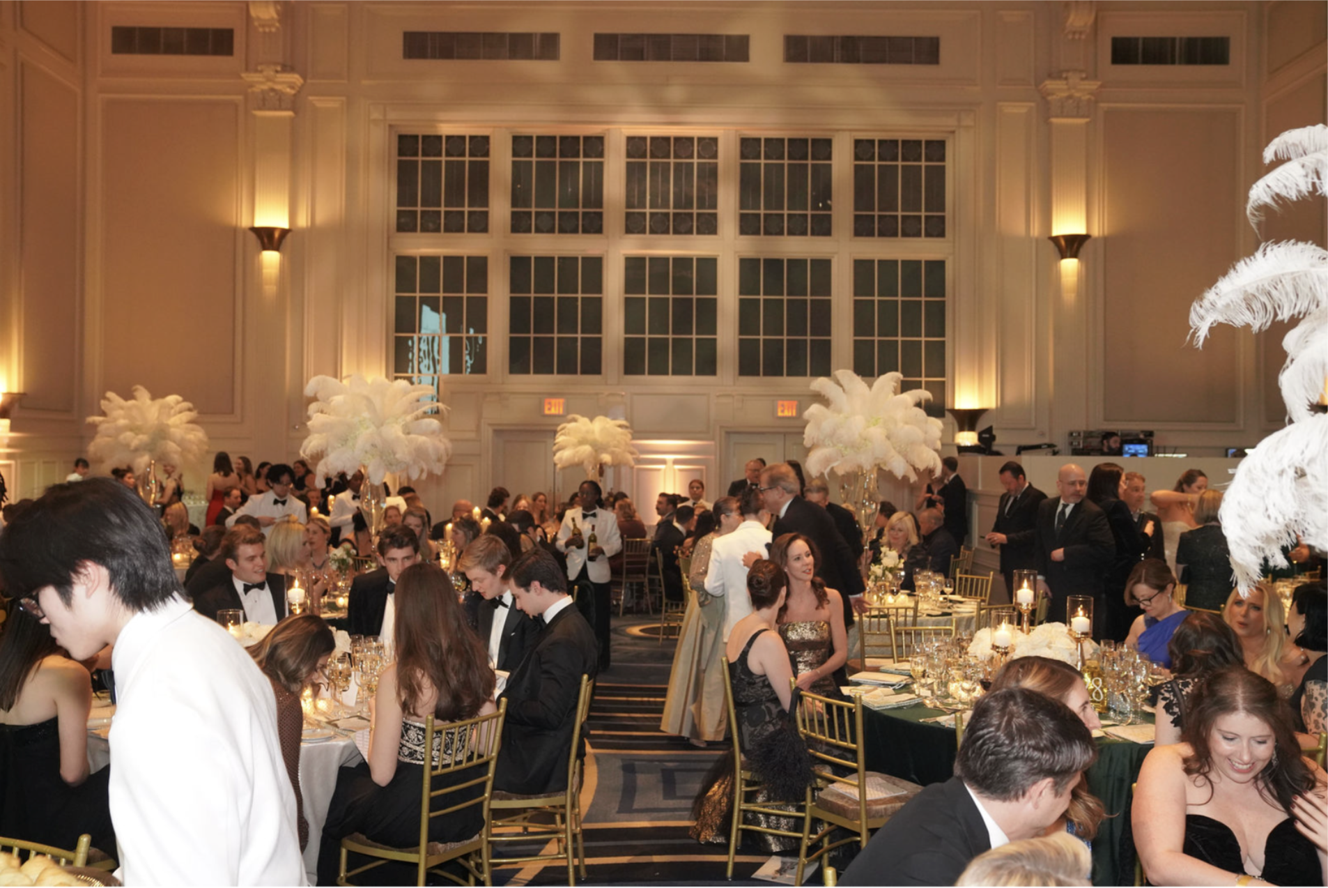 Stepping into the ballroom felt like entering a scene from Bridgerton or the Gilded Age itself. Towering feathered centerpieces commanded attention, dramatic and breathtaking against the grandeur of the space. The energy throughout the evening was beautifully intoxicating, charged with celebration, glamour, and a shared sense of purpose.