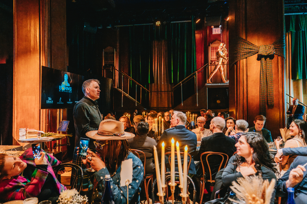 The evening took place at Conwell, formerly home to the immersive Life and Trust experience. By night, the space transforms into an elegant cocktail lounge with refined drinks and shareable small plates—perfect for unwinding after work or a date night in downtown Manhattan. For Burns Distilled, it became the ideal backdrop, shifting from city lounge to a warm celebration of Scottish culture.