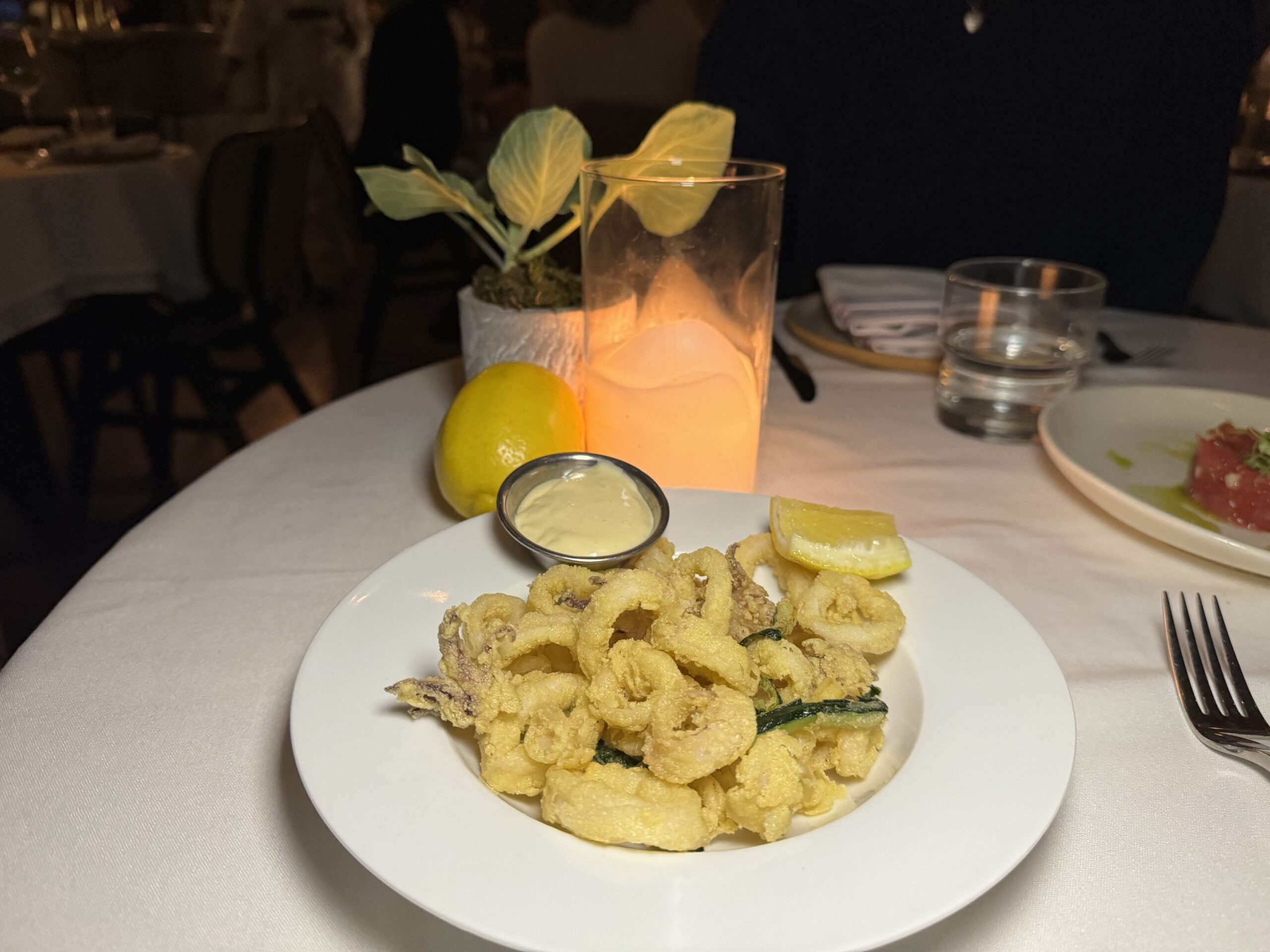 We enjoyed a five-course meal, showcasing the pop-up’s highlights. The appetizers recommenced started with Calamari e Zucchine Fritti: perfectly crispy squid and zucchini paired with a refreshing lemon garlic aioli. This light and savory dish was a fresh and salty way to start the experience.