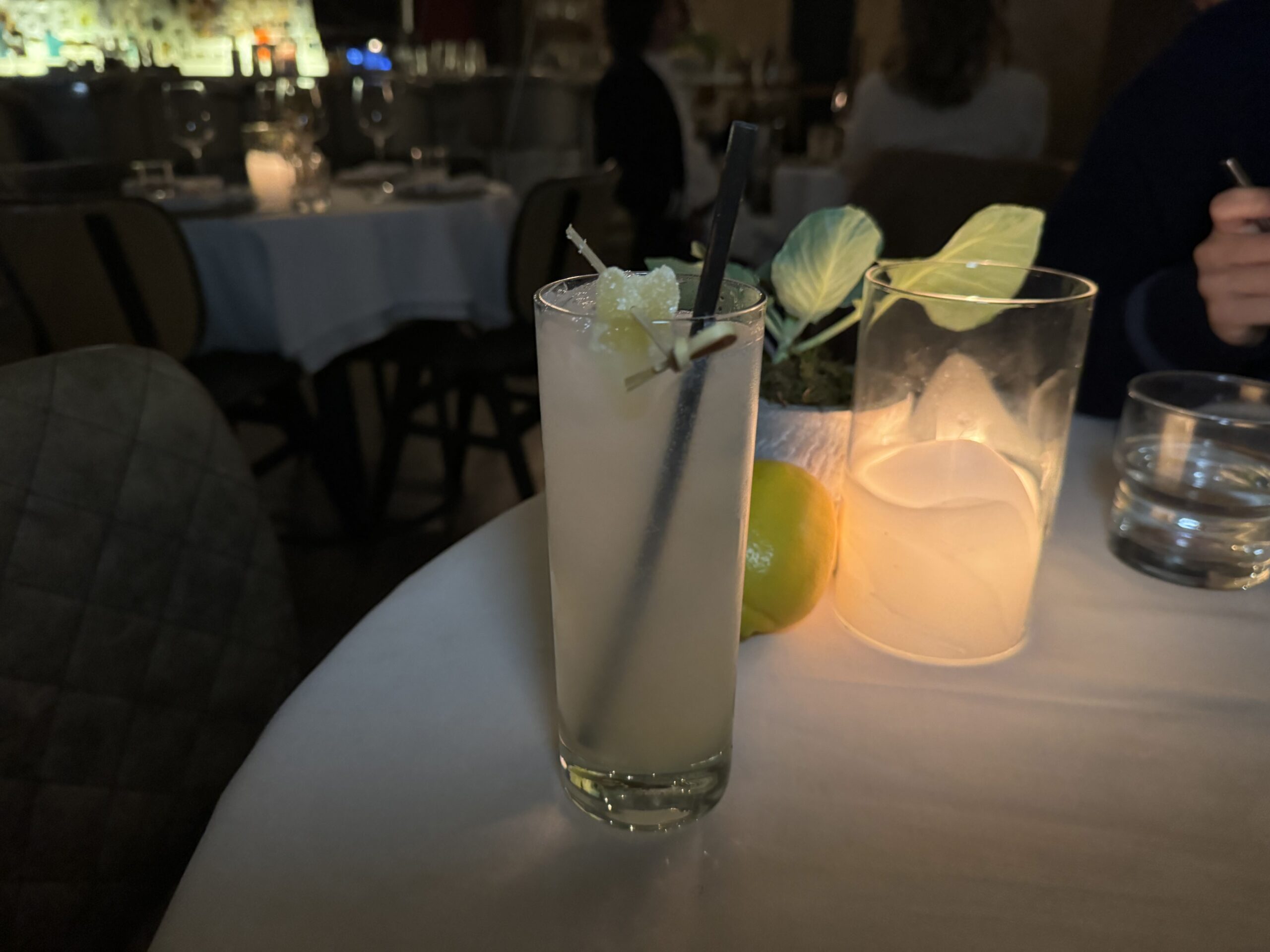 Norah’s modern interior made the experience even more notable. With unique shaped light fixtures and candles that added a mellow aura. The marbled bar showcased a wide selection of drinks, contributing to the earthy and vibrant atmosphere with trees and vines – all accompanied by a DJ, bringing the dining experience all together.