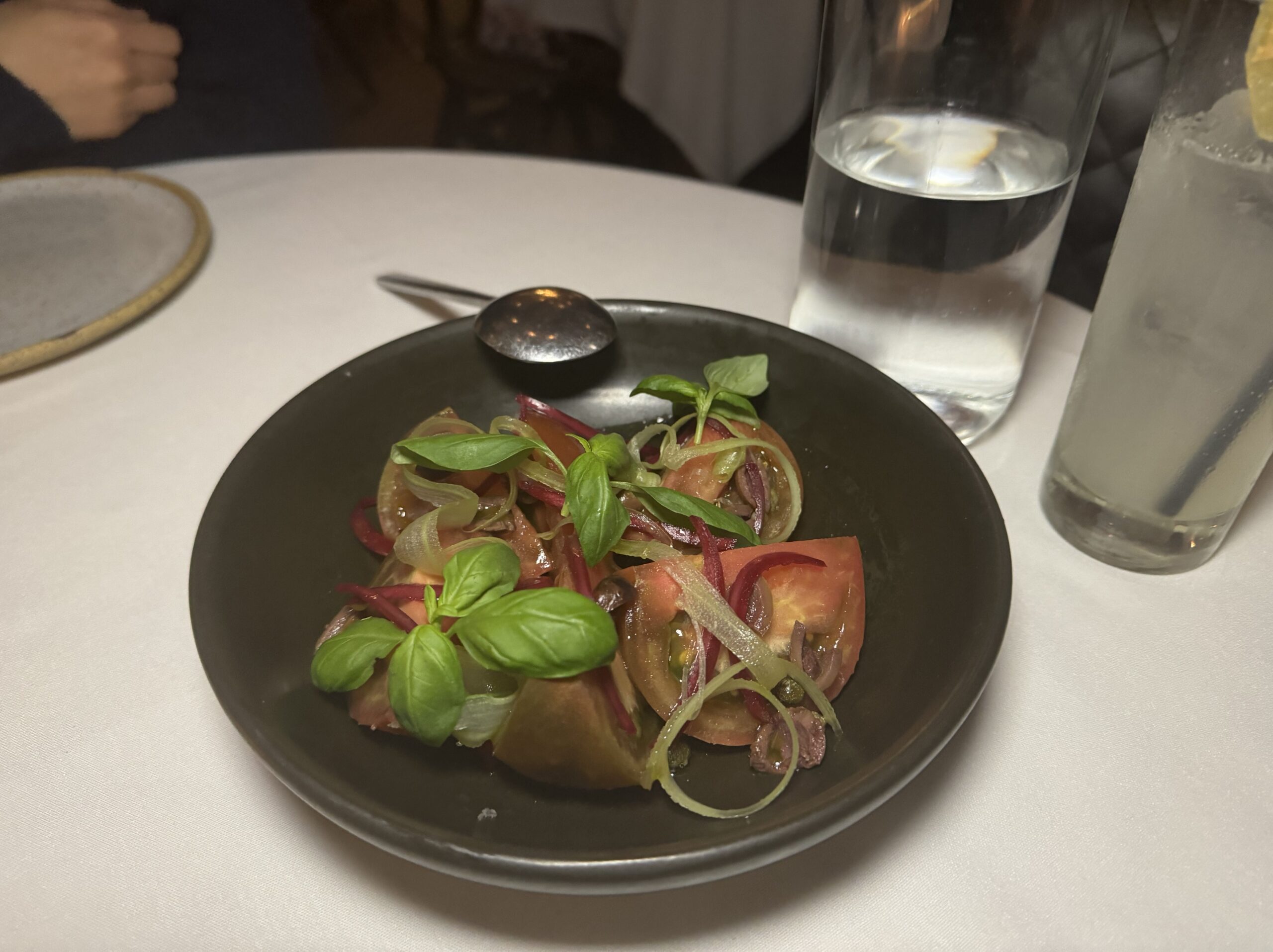 For the main course, Spaghetti alla Nerano and a side of Rucola. The pasta, starring perfectly cooked spaghetti, zucchini, basil, black pepper and pecorino, stole the show. The roasted eggplant added a smoky depth, creating a comforting flavor. The Rucola salad, with its juicy tomatoes and oily base, offered a refreshing side to the table.