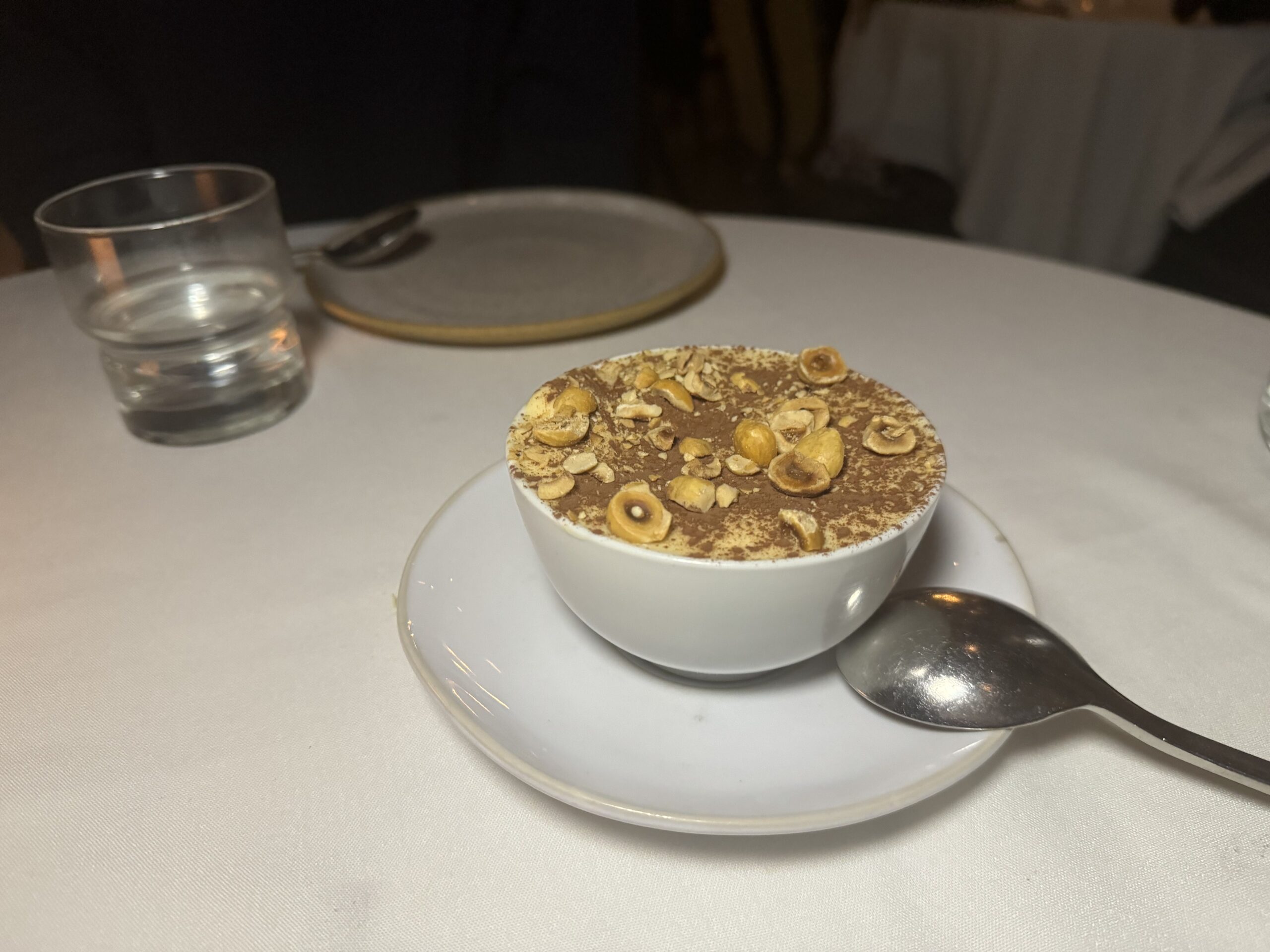 Finally, dessert arrived – think giant Ferrero Rocher – a custard filled pastry covered in chocolate and nut shells. This airy and fluffy dessert wasn’t overly sweet and could easily be shared.