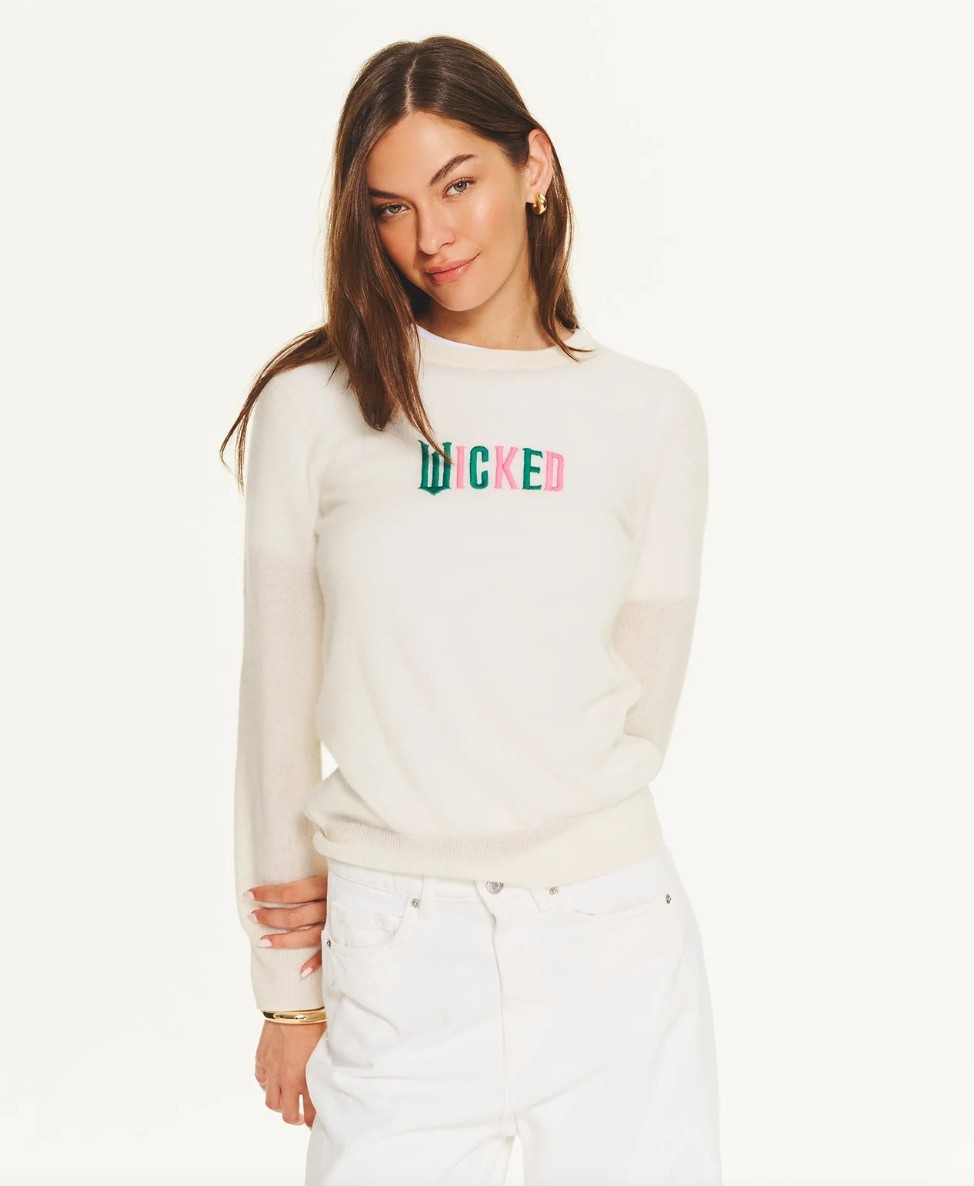 The Naadam Wicked: For Good cashmere collection brings a little cozy movie magic to everyday life. The classic Wicked Cashmere Sweater pairs crisp white cashmere with the bold pink-and-green logo, while the Defying Gravity Sweater channels Elphaba’s fearless spirit with embroidered details. Glinda’s Charm Cashmere Sweater adds a touch of pink perfection with her crown and wand. Wickedly soft and luxurious, each piece lets fans wear the enchantment of Oz—perfect for stealing the spotlight on and off the screen.