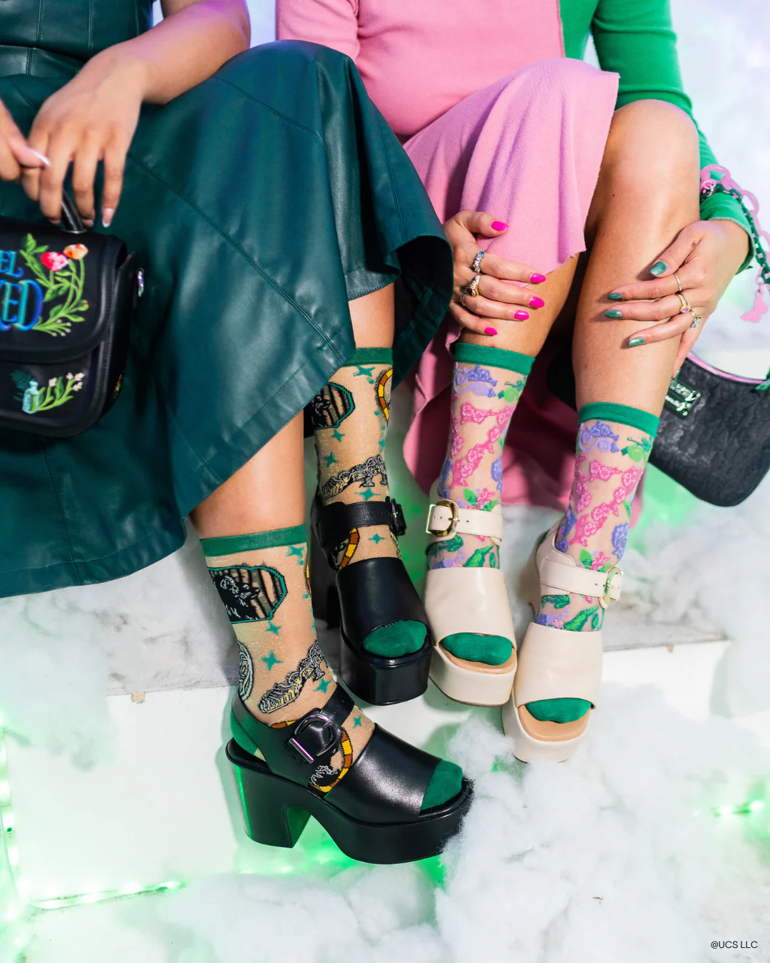 Sock Candy, a fashion-sock brand founded by former fashion influencer Mary Gui, celebrates unconventional personal style with whimsical prints, bold colors, and quirky combinations crafted from premium mercerized and combed cotton. In celebration of Wicked: For Good the movie, the brand has launched a limited-edition Wicked x Sock Candy collaboration featuring eight enchanting styles and six spellbinding bundles inspired by the magical world of Oz. Meant to be paired with sandals or heels, the collection includes standout designs like the Elphaba Silhouette Sheer Crew Sock, showcasing Elphaba’s iconic silhouette against a sheer nude base, and the Glinda Upland Bundle, which brings together three dazzling Glinda-inspired styles—the Glinda Silhouette Ruffle Sheer Crew Sock, Glinda Land Butterfly Shimmer Sheer Crew Sock, and Get Ready with Glinda Sheer Crew Sock. Whether feeling Good, Wicked, or somewhere in between, this collection lets fans
