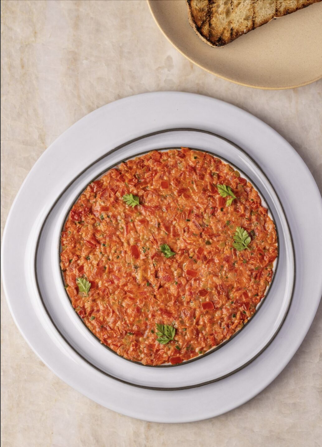 The Tomato Tartare is a signature dish that is a re-imagining of tomatoes, served in a tartare style that reflects Chef Dani Garcia’s modern Andalusian approach. Refreshing and not overly heavy, it pairs well with any upcoming paella or main dish without overshadowing it.