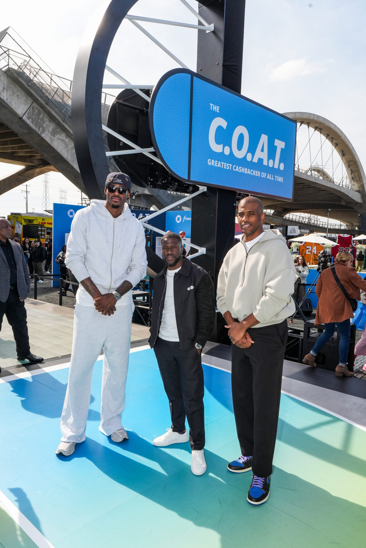 Kevin Hart, Chris Paul, and Jarred Vanderbilt arrived together to energize the crowd for a friendly COAT shooting competition. The on-court chemistry was electric as Kevin kept fans and fellow competitors laughing throughout. “Don’t judge a book by its cover,” Kevin emphasized after a fan surprised everyone with exceptional shooting skills. The comedian also playfully teased Chris Paul, calling him the “oldest cashbacker” during the competition, and challenged him to a one-on-one matchup, joking that Chris would “lose every day of the week” if Chase put up the money.
