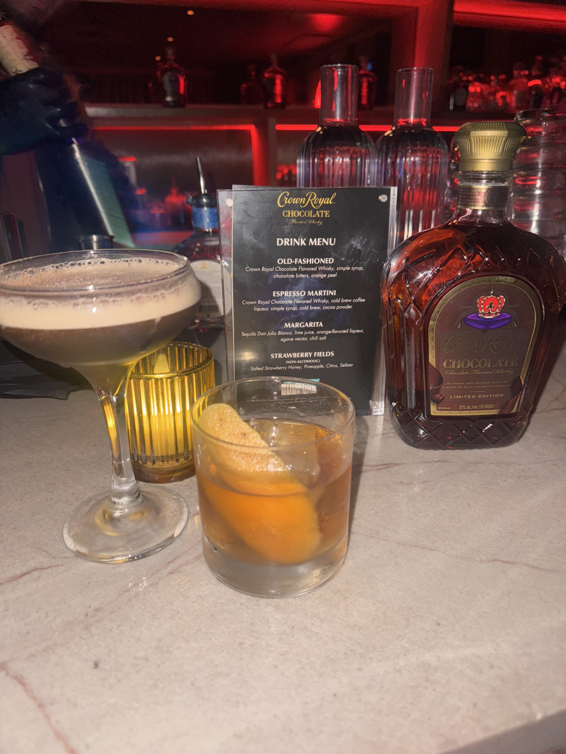 An Old Fashioned made with Crown Royal Chocolate Whiskey complemented the chocolate bitters in a way that was not too overwhelming for those who reach for Old Fashioneds in the first place. For the Espresso Martini girlies, the chocolate-flavored whiskey made the cold brew almost into a mocha, serving up a sweet aftertaste that kept you asking for more.