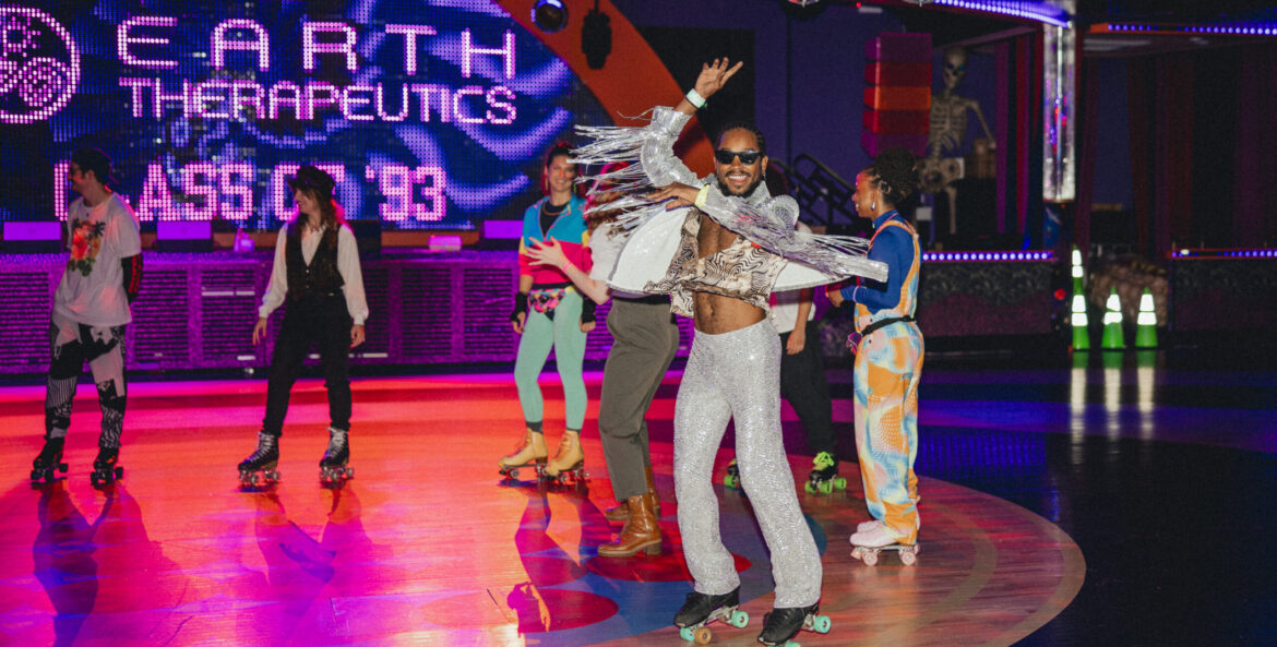 We rolled back in time to the 90s on Wednesday with Earth Therapeutics’ rollerskating anniversary party in Brooklyn, New York.