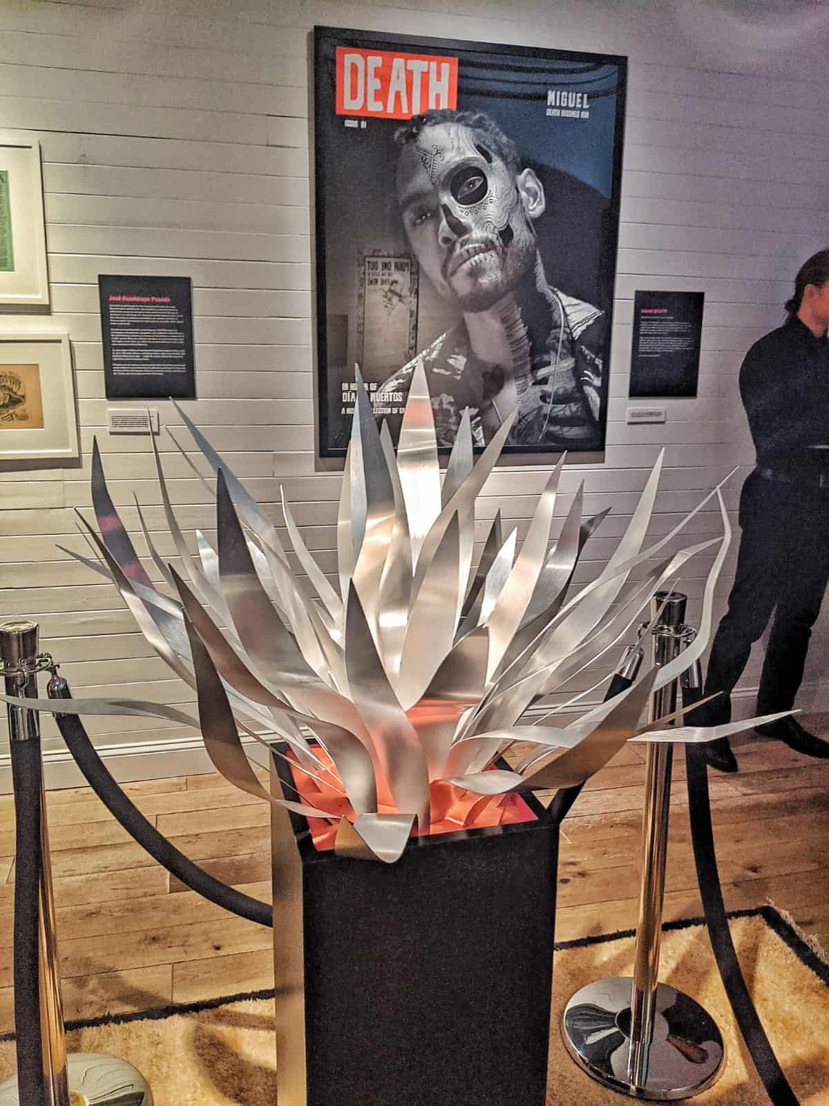 The second room of the pop-up combined art and history, with a DEATH magazine cover decorating the wall among classic literary calaveras. As described within the displays commemorating the 20th century pastime that started it all,“what began as satirical obituaries aimed at the Mexican high-society of the early 1900’s, quickly evolved into a longstanding Day of the Dead tradition. They are a sign of Mexican creativity and irreverence–and a friendly reminder of our own mortality.” Espolòn’s DEATH magazine took the creativity that made calaveras commonplace and put a modern twist on the artform.