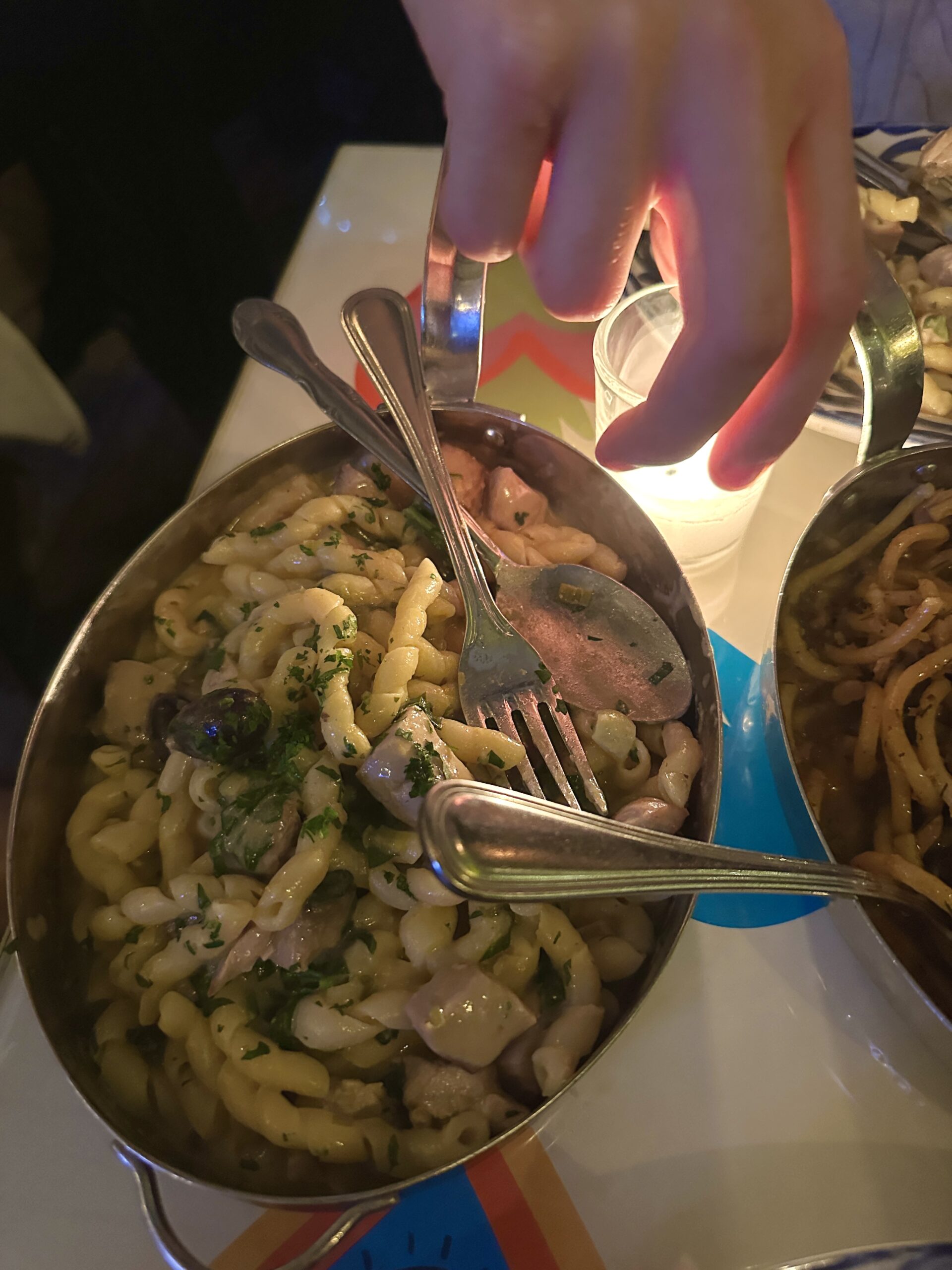 My boyfriend and I experienced the special at Piccola Cucina on Tuesday night, enjoying generous pours of wine, a lively atmosphere, and an abundance of dishes. It was an ideal date night, filled with laughter, chatting, and some eavesdropping on the first date sitting next to us. The restaurant wasn’t exaggerating when it promised a feast. By the end of the evening, we could barely fit every plate on our table.