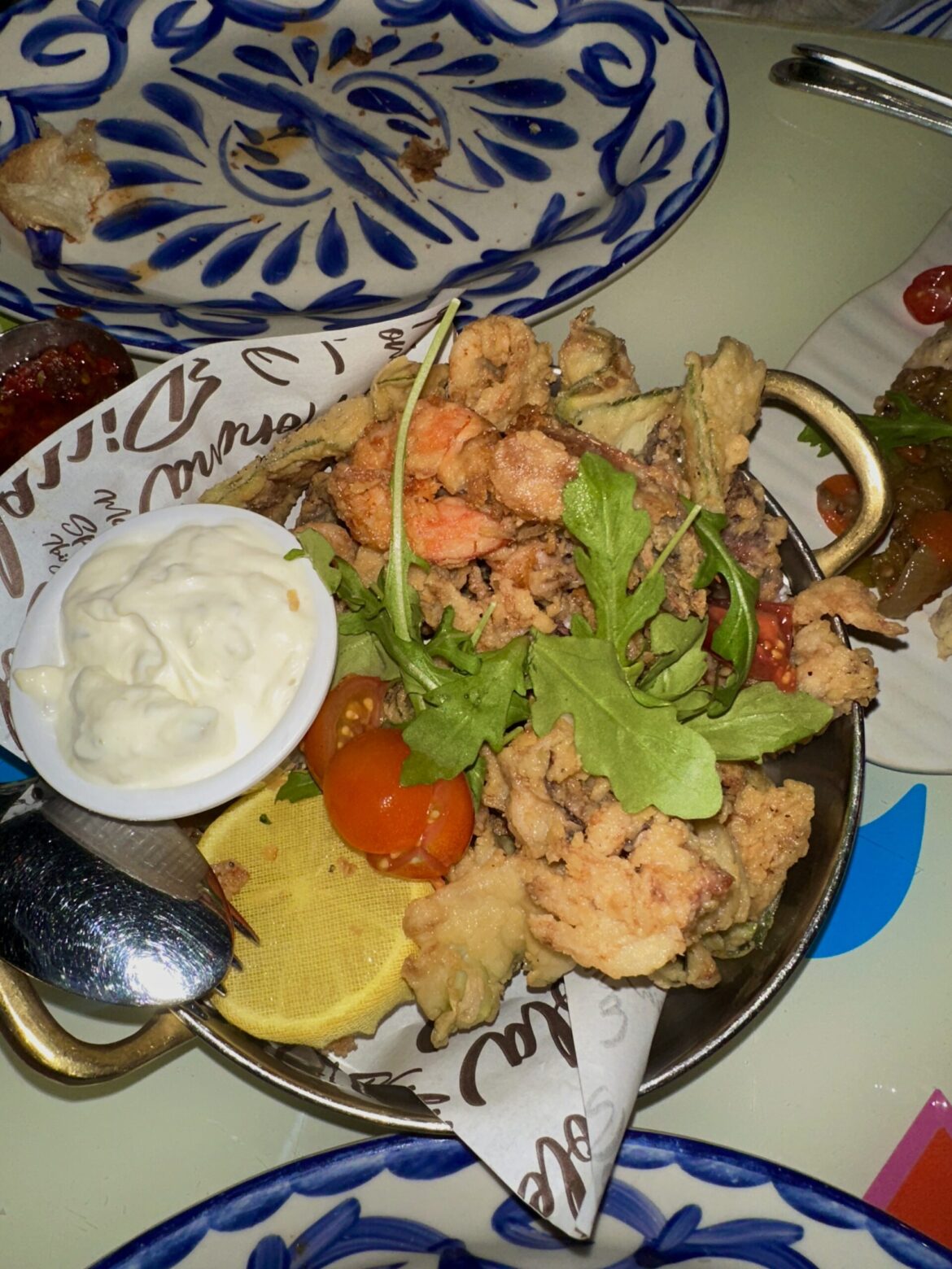Frittura di Calamari, Gamberetti e Zucchine: lightly fried calamari, shrimp, & zucchini