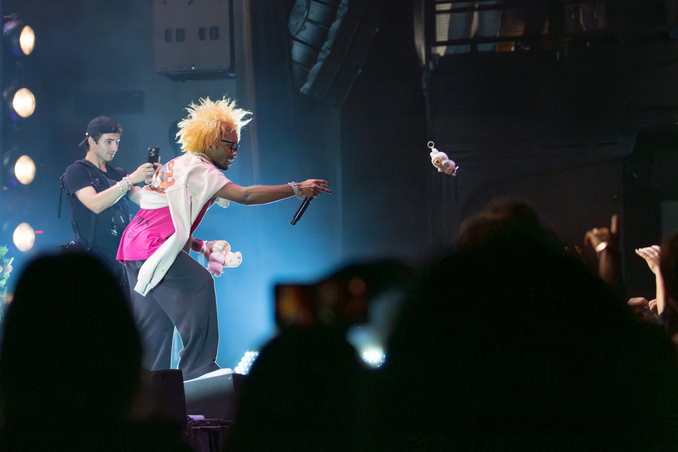 Everything down to d4vd’s clothes shifts many times a minute. d4vd sprinted from side to side of the stage. He would point out people individually, looking them in the eyes. Sitting. Standing. Dancing. Jumping on the stage. Flipping. Wearing his sweatshirt halfway on. Tossing the sweatshirt into the crowd. Playing piano. Jumping onto the floor. Leading the crowd into a boys vs. girls singing competition, and come to think of it, I don’t know who won. I guess we all did.