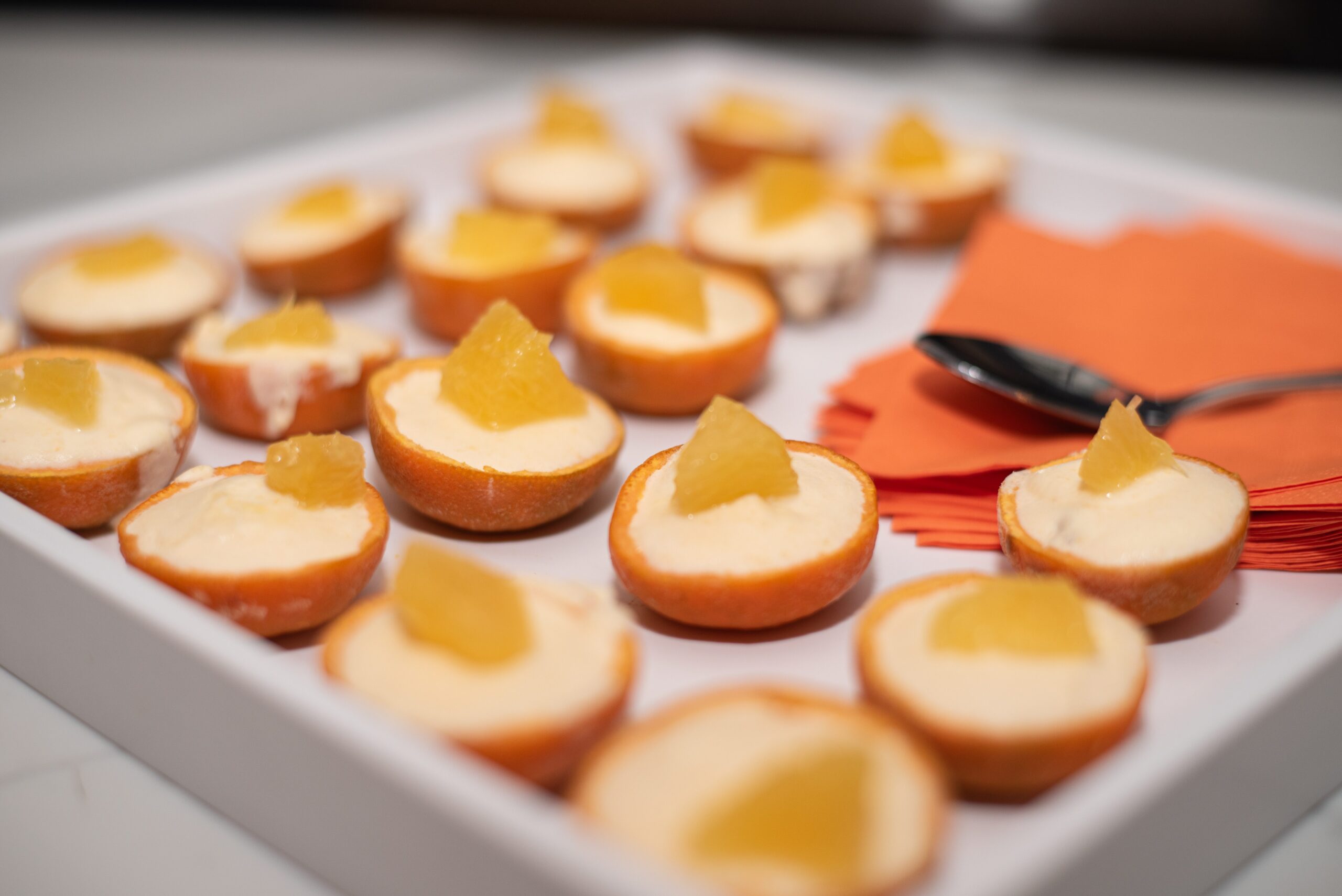 Guests continued the citrus journey with passed bites served throughout the space, including pan-seared scallops finished with a chipotle Florida Orange Juice sauce. For dessert, the cranberry orange semifreddo was a standout. Every dish incorporated citrus in a way that felt thoughtful, and fun.