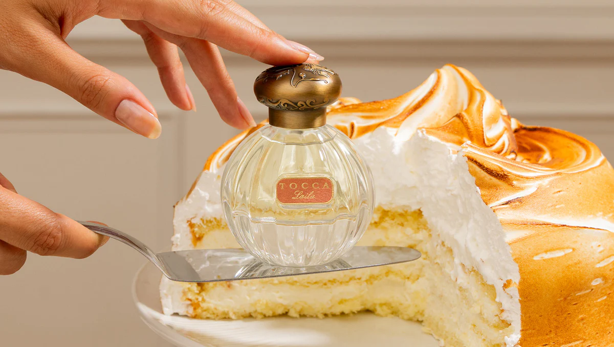 “It isn’t whispering– it’s indulging,” reads TOCCA’s tagline for Laila, and I couldn’t agree more. It’s elegant, it’s fun, it’s tasteful. And what better way to showcase what a slice of heaven can smell like than with cake?