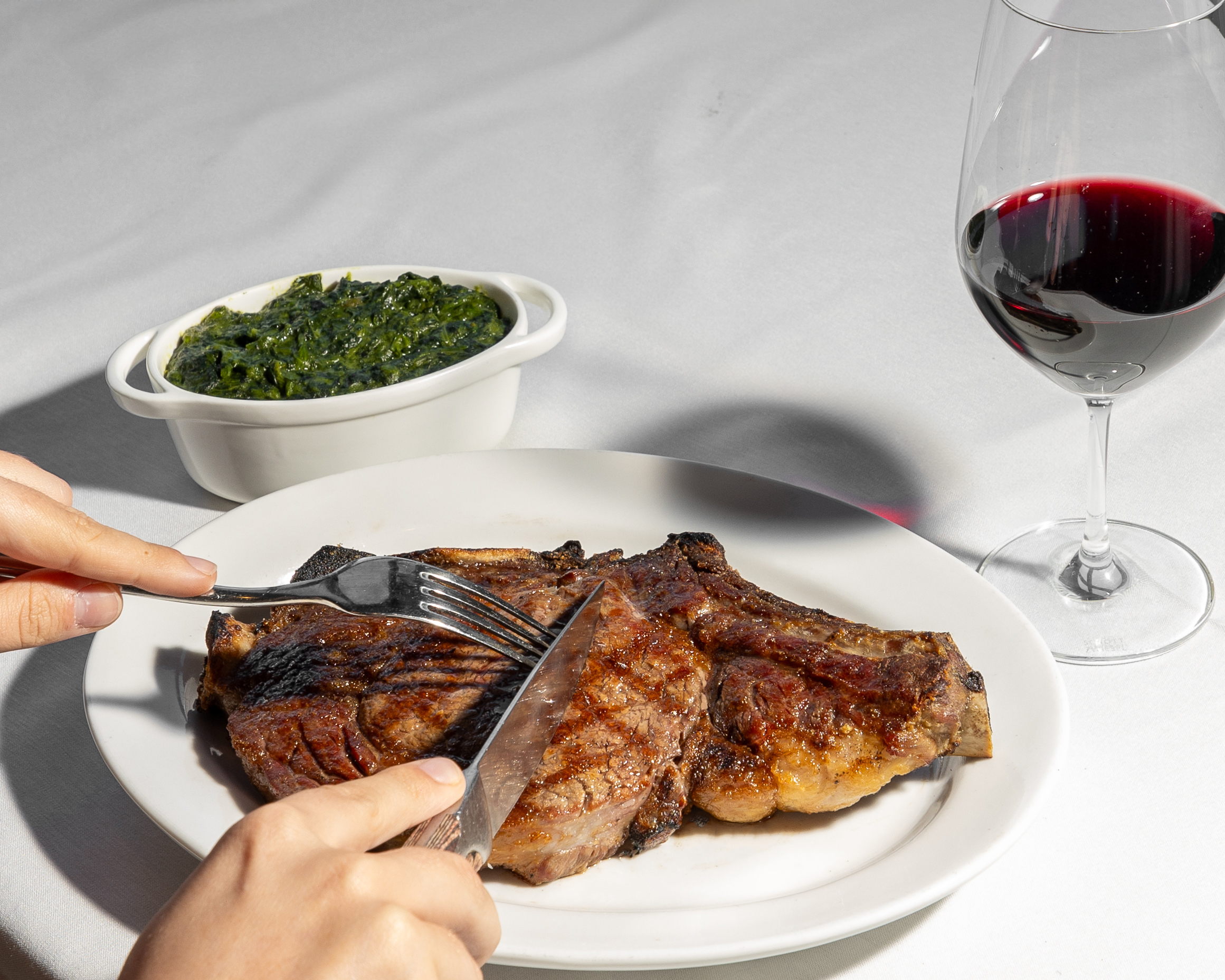 Our fantastic waiter, Chris,ย recommended that we have the porterhouse โOscar-style,โ where the steak is topped with crab meat, seared asparagus, and a rich Hollandaise sauce.ย The mix of surf-and-turfย elevated the dish and made it even more extravagant and delicious. We highly recommend trying โOscar-style.โ