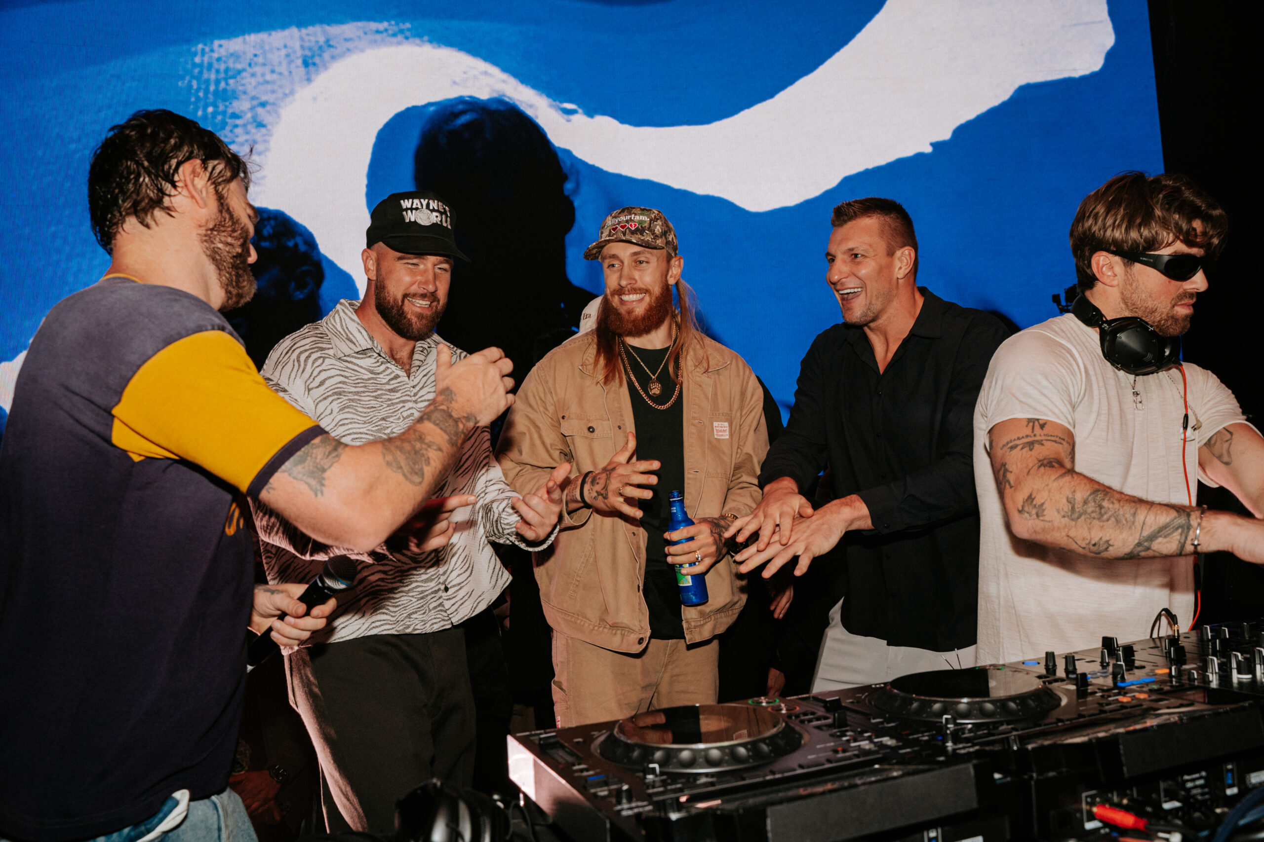 Travis Kelce joined The Chainsmokers on stage for finance Taylor Swift’s “Blank Space” that played in the house. Legendary Tight Ends, Travis Kelce, Rob Gronkowski and George Kittle also enjoyed the epic night.