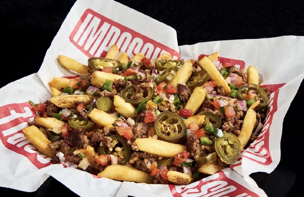 The Impossible® Grille features dishes like the Impossible® Double Stack Smashburger, the Impossible® Banh Mi Hot Dog, the Orange Impossible® Chicken Bowl, the Impossible® Steak Quesadilla, and the Loaded Impossible® Chopped Cheese Fries.