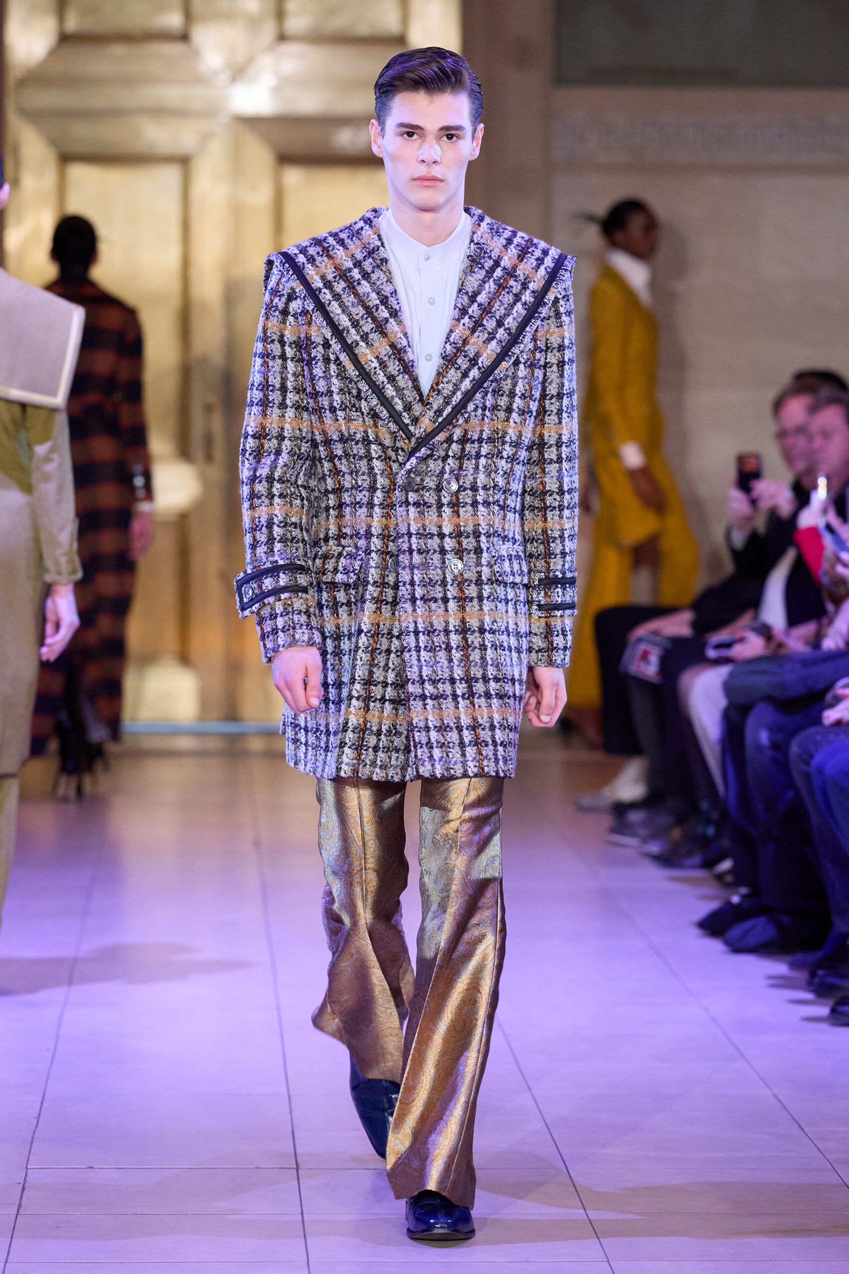 I sat front row at the runway show which was held at the historic Leman Ballroom in the Financial District — and the coed presentation channeled the visual lexicon of late 1920s and 1930s glamour. Breton, whose training on Savile Row underscores his meticulous tailoring, delivered a collection that felt less like a seasonal offering and more like a carefully constructed moment. And the audience of fashionistas were totally here for it.
