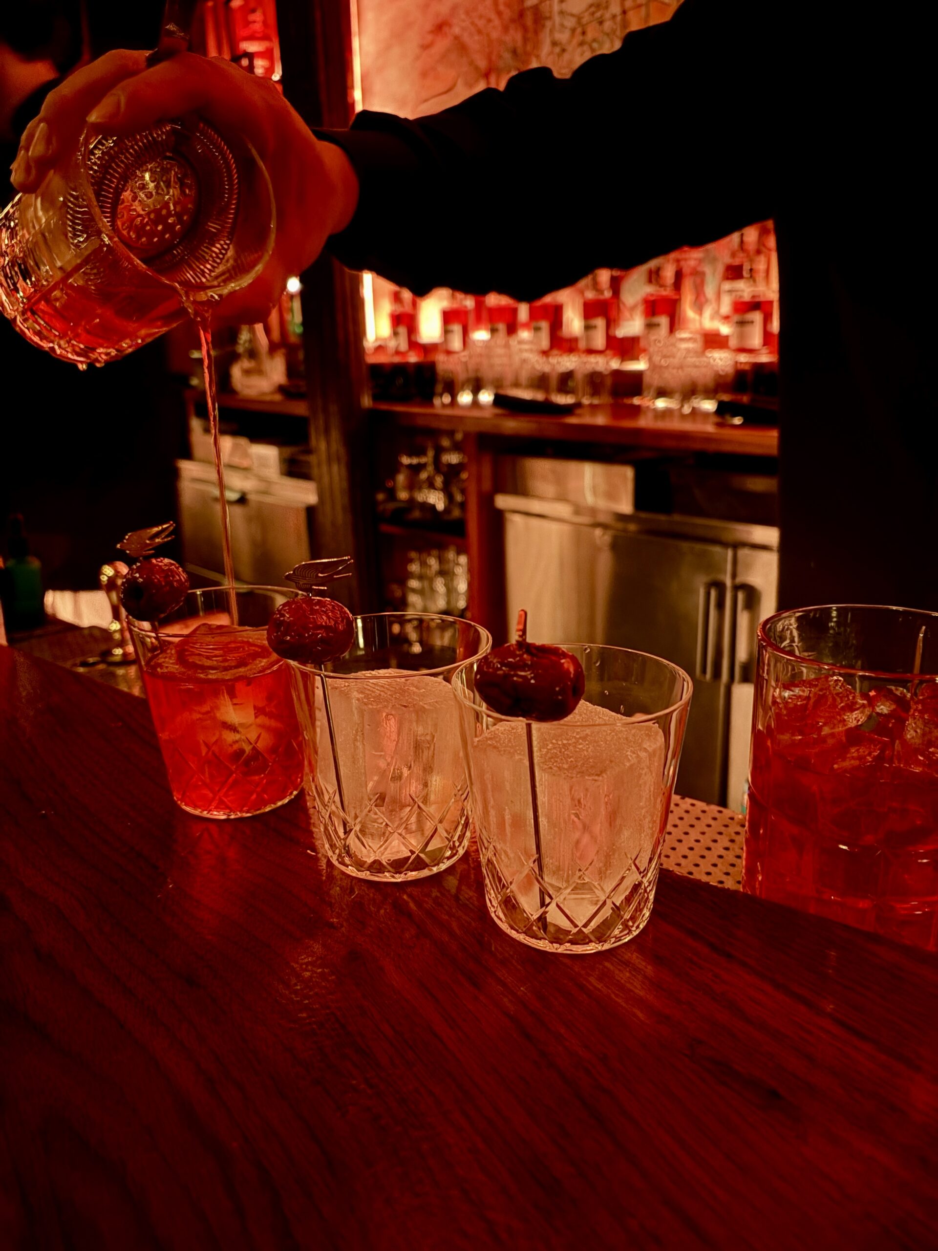 The evening opened with an open cocktails and conversation with Martell representatives and guests. At the open bar, Lunar New Year–themed cocktails showcased Martell’s portfolio. The most popular was Year of the Fire Horse, a layered blend of Martell Blue Swift cognac, Ming River baijiu, shoumei tea, lemongrass, ginger, and mandarin. The drink balanced citrus brightness with spice and depth, reflecting the energy associated with the zodiac animal. Later on, the guests were surprised with a dragon dance performance that moved directly through the crowd. Accompanied by rhythmic drums, the dragon weaved between guests who were handed red envelopes containing a dollar bill and encouraged to feed it before the dance began. The gesture carries symbolic meaning: placing money into the dragon’s mouth represents an offering of good fortune and prosperity for the year ahead.