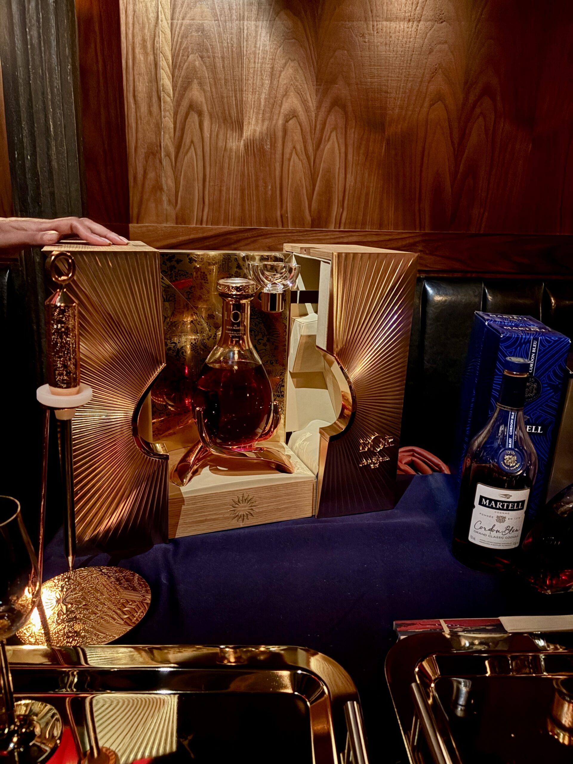 The centerpiece of the evening was L’Or de Jean Martell Zodiac Edition Assemblage du Cheval. Housed in a Baccarat crystal decanter shaped like a suspended drop, the edition features a deep red crystal horse-head stopper and a gold pedestal engraved with a horseshoe motif. Each bottle is individually numbered. Martell Cellar Master Christophe Valtaud selected aged Grande Champagne eaux-de-vie, including reserves drawn from previous Years of the Horse, to enrich the existing L’Or profile without altering its identity. The resulting blend carries notes of honey, candied fruit, florals, red fruit vibrancy, and extended length on the palate. Guests were invited to select Martell-branded folding fans placed throughout the venue. A small number of fans were discreetly marked with an “X.”, those who discovered the marking were invited to a private tasting of L’Or, creating an intimate moment within the larger celebration. Champagne from Perrier-Jouët flowed alongside cognac tastings as guests circulated between the bar, mahjong tables, and lounge seating.