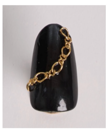 3.    Using tweezers, drop the chain only the nail. Press the chain down into the glue and allow a couple of minutes for the glue to dry.