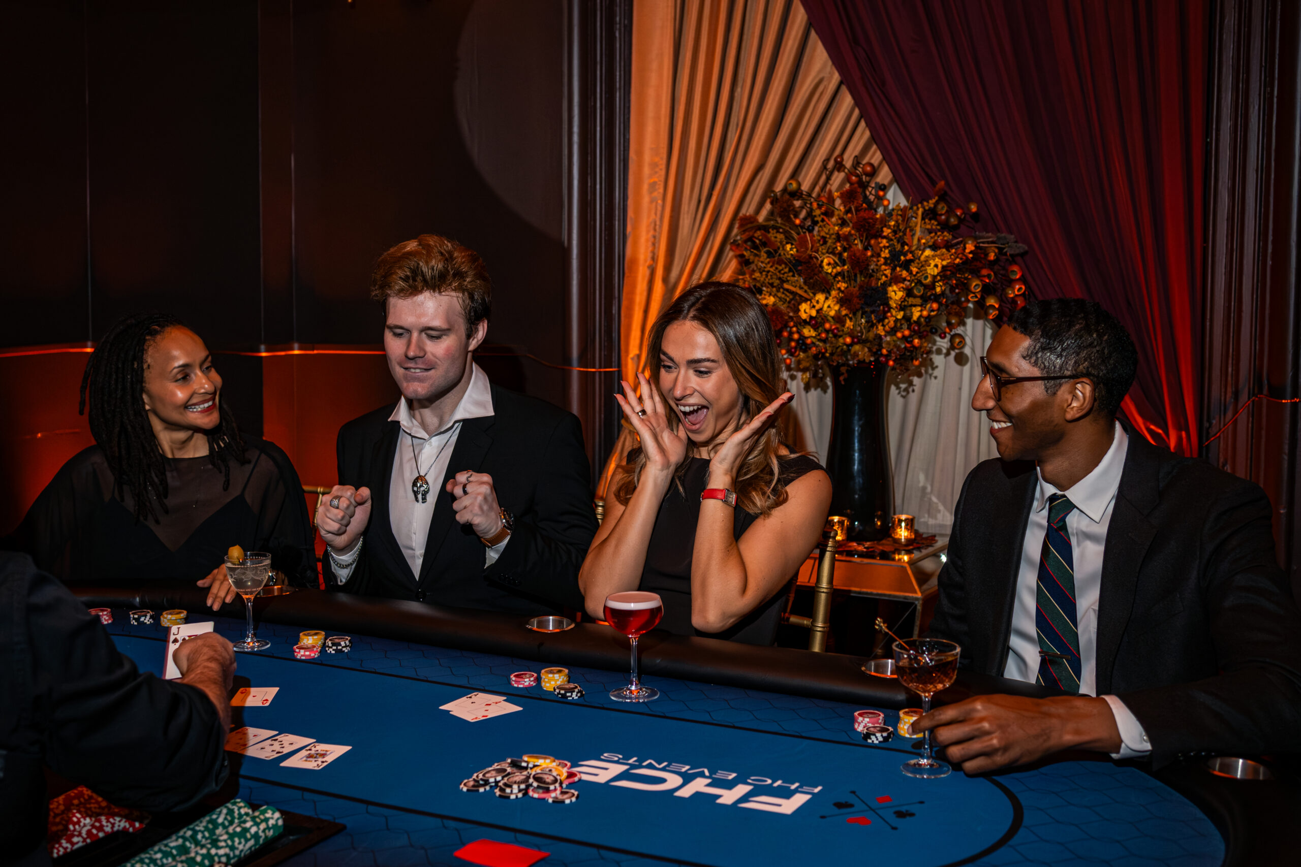The casino tables were a lot of fun, mostly focused on blackjack, roulette, and craps. I’ll admit, I still need to actually learn how to play craps, but I was loving blackjack (held a solid hot streak). The food was fantastic, the filet mignon skewers and wagyu sliders were especially savory and flavorful. The house drinks were also excellent, as I was especially a fan of the Amber Old Fashioned and Isla Belle tequila.