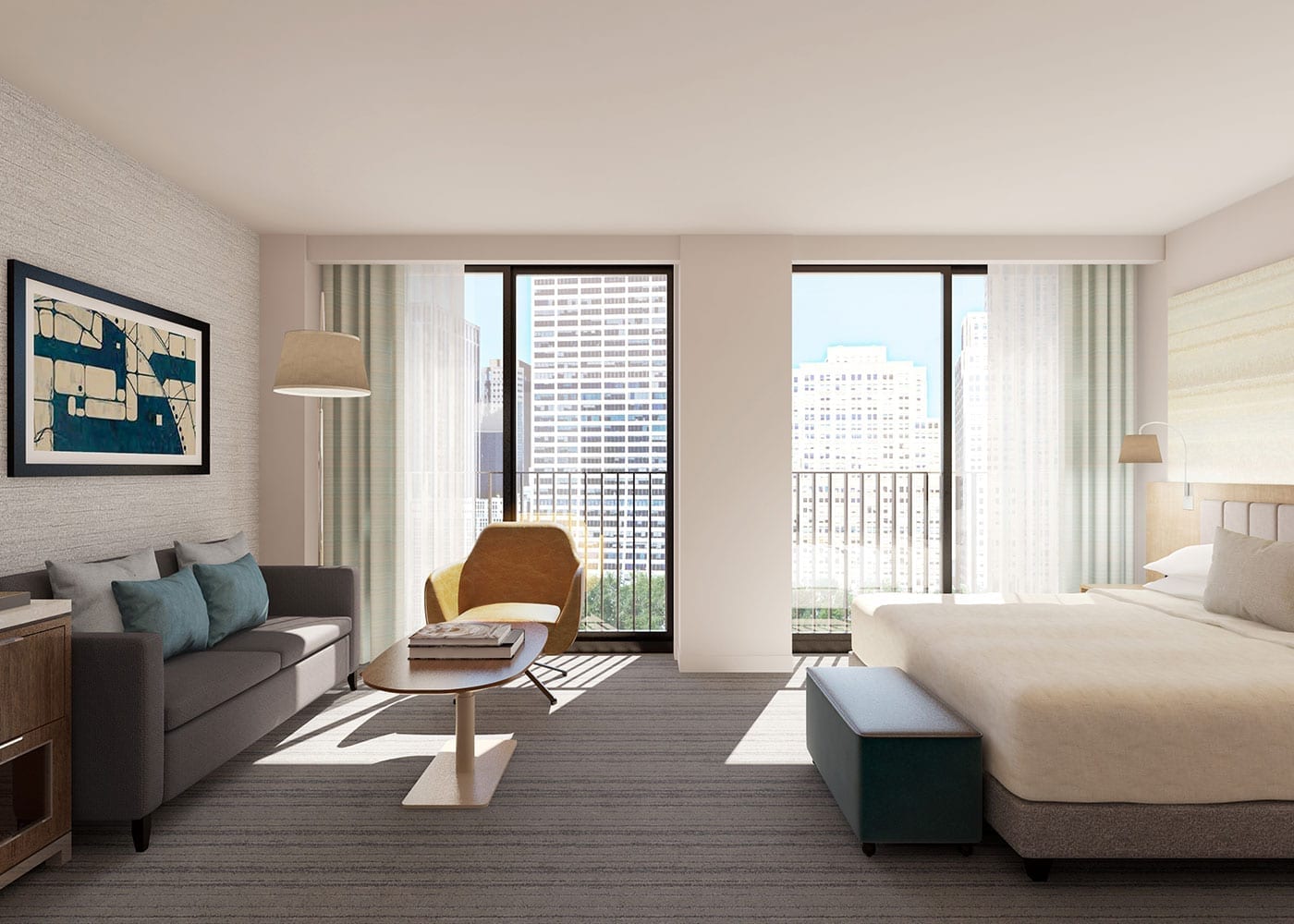 The hotel also has a sauna and a fitness center with Peloton bikes. Guests will find a 24-hour front desk, a shared lounge and a business center. The Park Terrace Hotel also is inviting guests to experience Branch, a newly reimagined indoor and outdoor lounge and workspace located on the sixth floor of the hotel that’s been curated to be a serene escape from the city’s hustle and bustle. Open daily from 7am to 11pm, Branch offers crafted espresso and matcha as well as pastries and granola from the popular Balthazar Bakery in the mornings. At night, a seasonal cocktail program inspired by the local ingredients and the beauty of Bryant Park are available. Hotel guests and their friends can enjoy these offerings from the comfort of Branch’s large open-plan spaces as well as the terrace with its magnificent views.