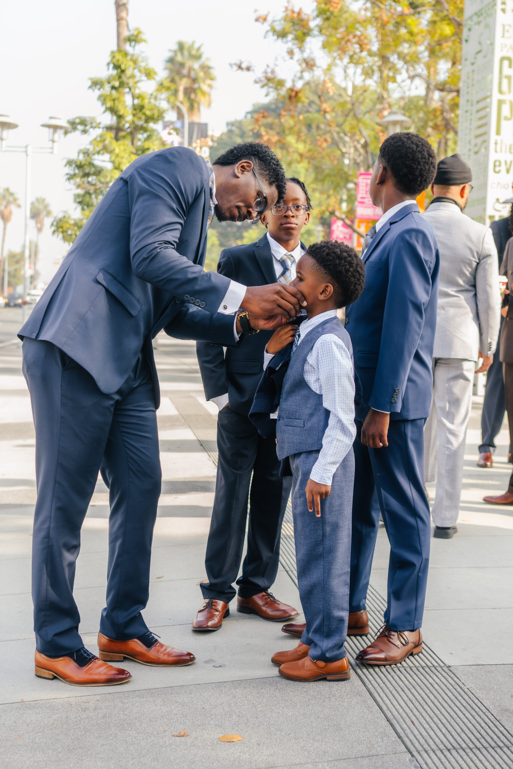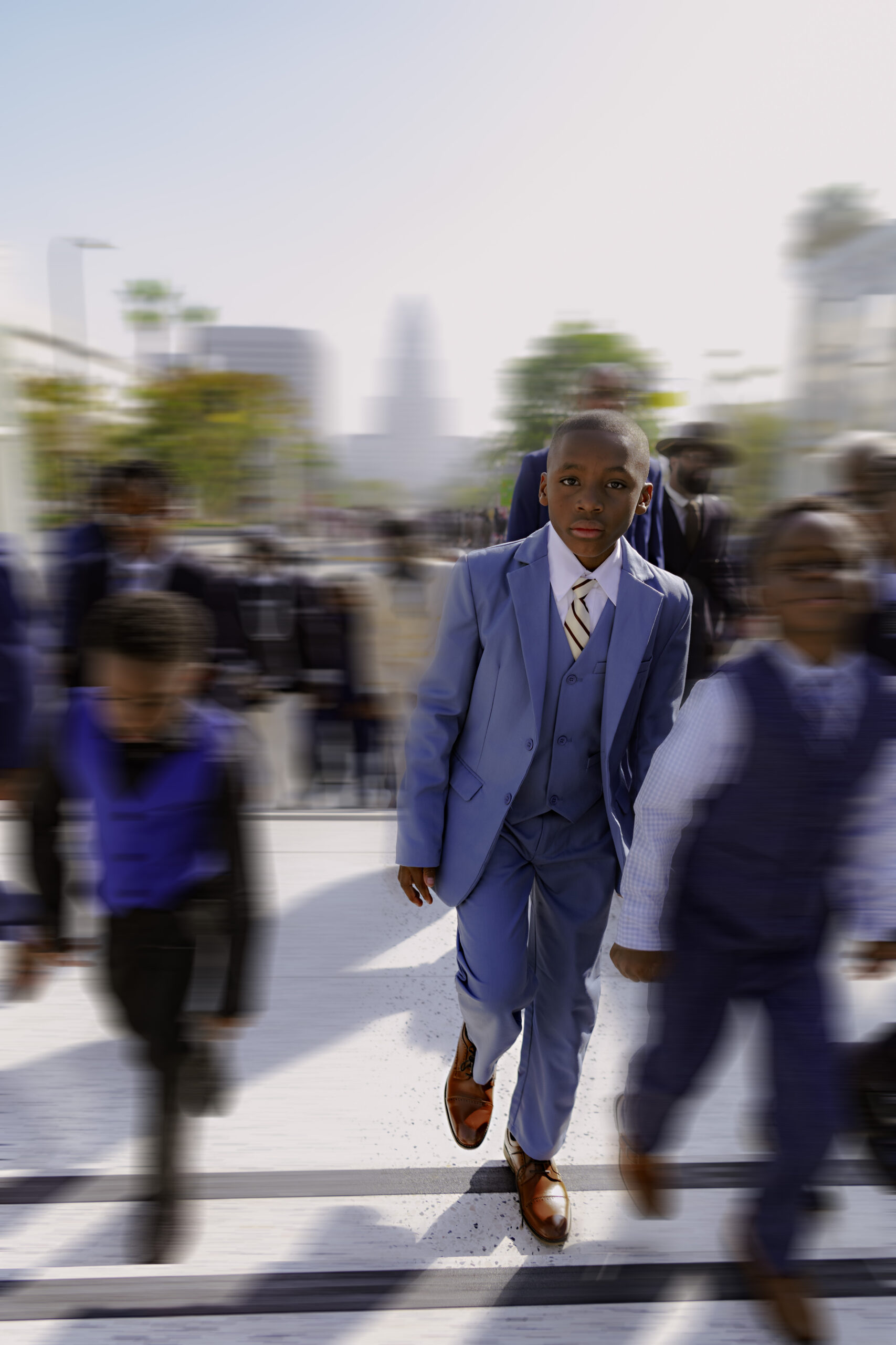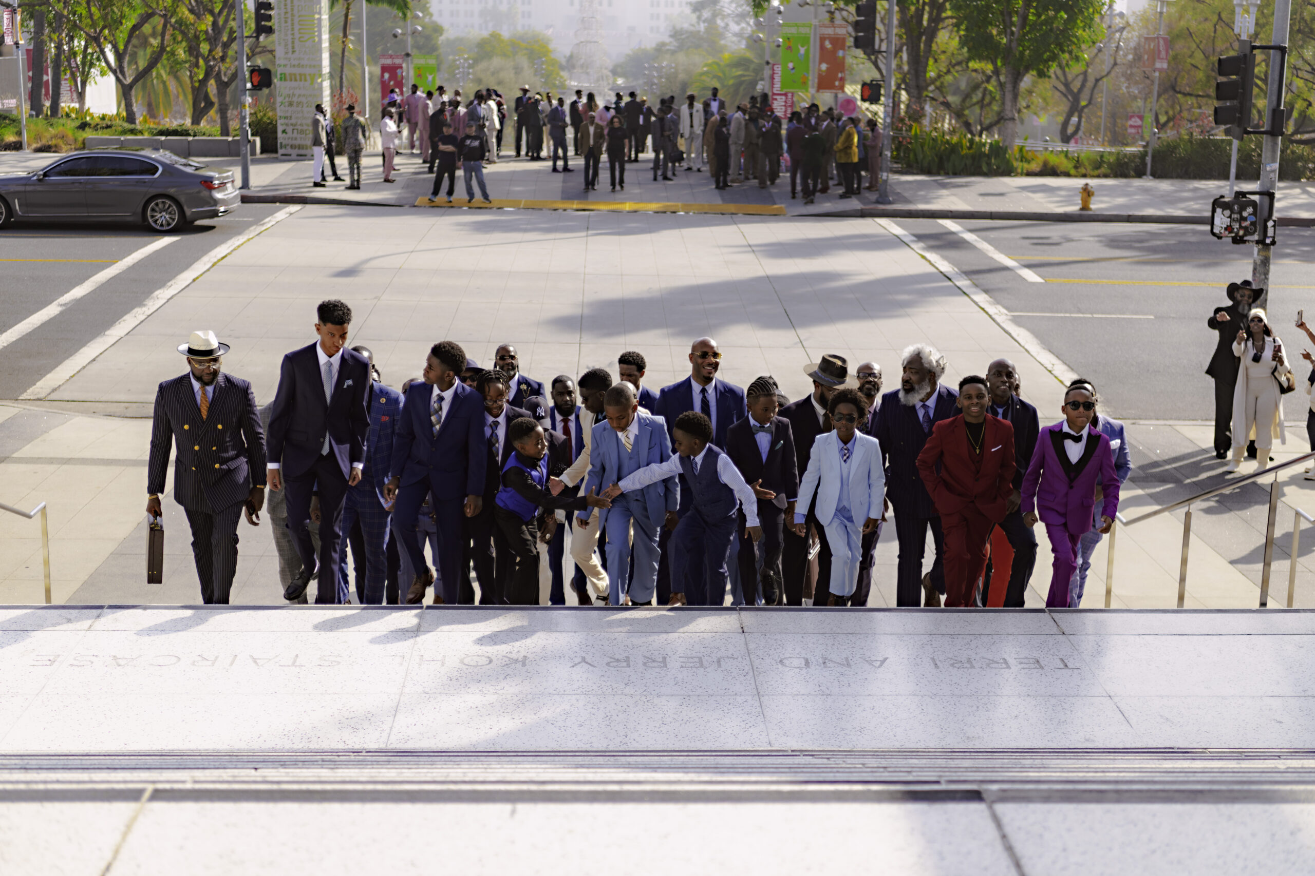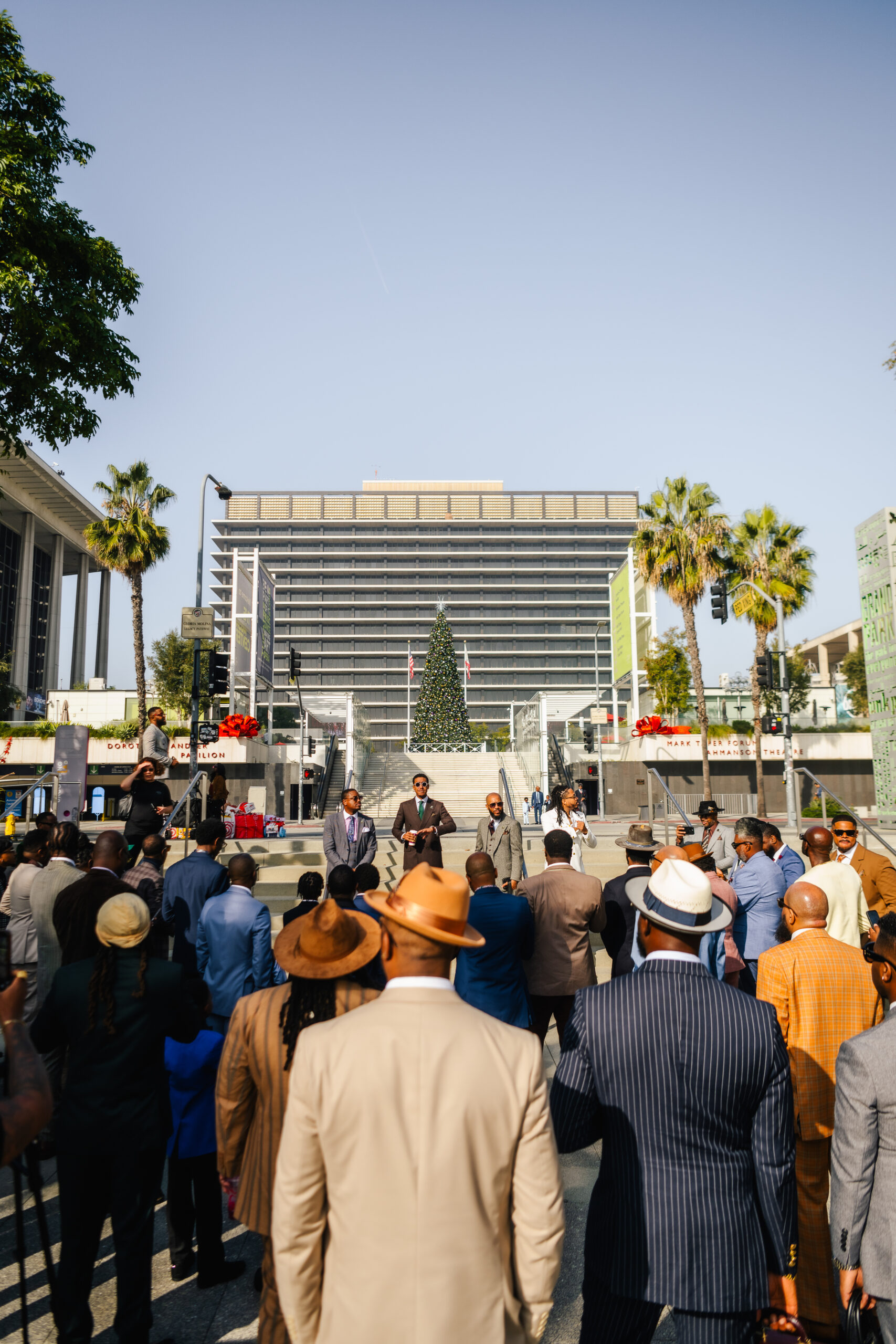 NeAndre Broussard: The Black Menswear FlashMobs are proof that community still matters in a world that often prioritizes individualism and isolation. What begins as a visual moment, a group of Black men gathered intentionally, quickly becomes something much more meaningful and much more necessary. Safe spaces for Black men are critical because so many environments require us to perform, filter, or armor ourselves just to exist. These FlashMobs create a setting where that pressure is removed. There’s no need to code-switch, overexplain, or prove worth. Men are able to show up fully as professionals, creatives, fathers, leaders, and students, and that freedom opens the door to real connection.