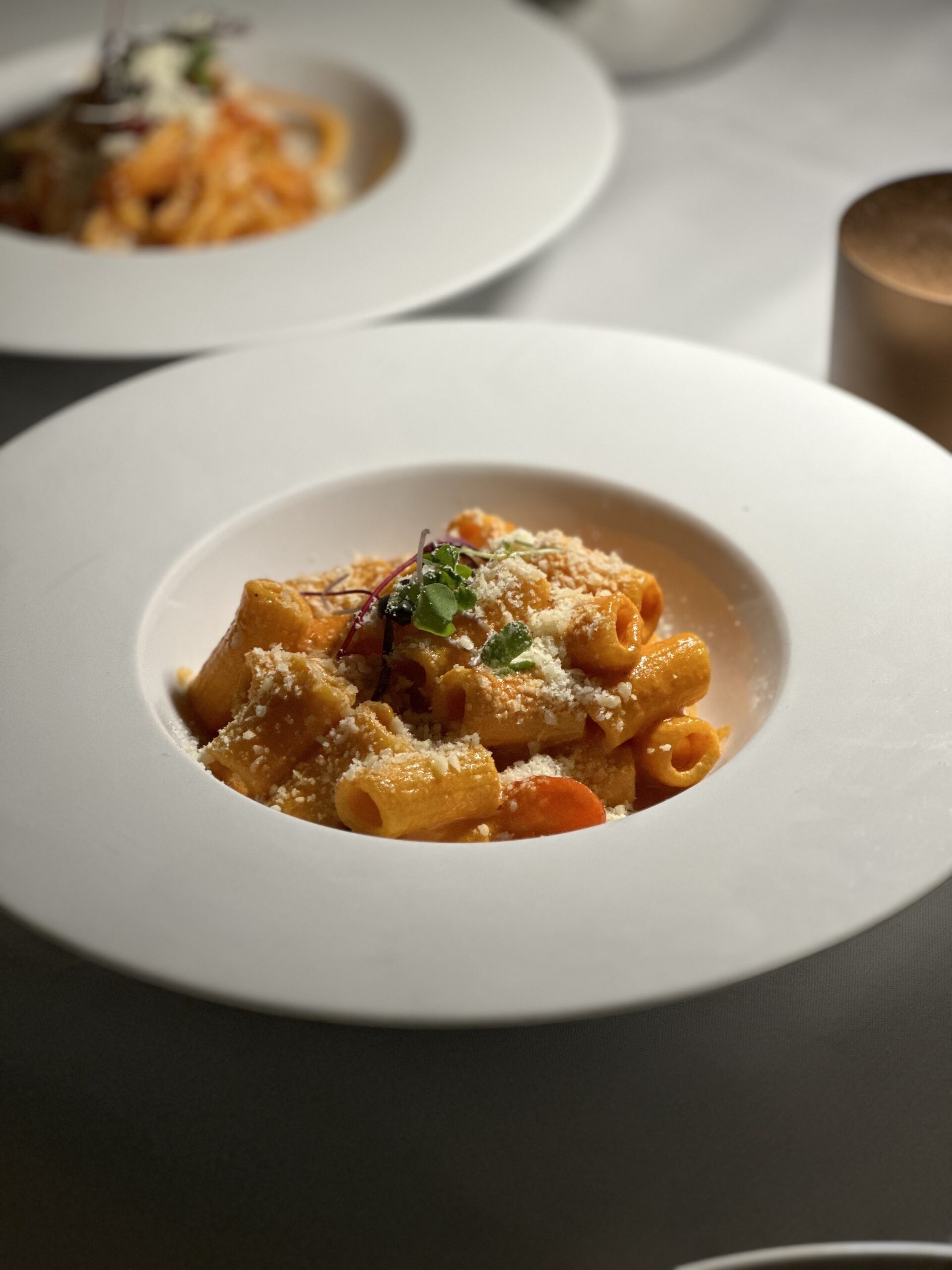Our main courses were the pasta dishes and we were served a classic Spaghettoni (large spaghetti) in a pomodoro sauce as well as Rigatoni alla vodka.  Before getting into the taste of these dishes, we find it very impressive how Nomad Girl makes it a point to make all their pasta fresh and have all their cheeses imported directly from Italy.  And when trying their pasta dishes you can taste the craftsmanship, technique, and care that goes into making the pasta.  The spaghettoni dish was a simple and clean dish with a classic pomodoro sauce.  The pasta was so tender and felt fresh and there was a lightness to the dish that we enjoyed since many times pasta dishes can feel overly heavy.  The rigatoni dish was probably our favorite out of the two as the vodka sauce was so creamy and had a balance of sweetness and savoriness to the dish.  The pasta was fresh and absorbed all the flavor from the sauce perfectly making for each bite to be full of flavor.