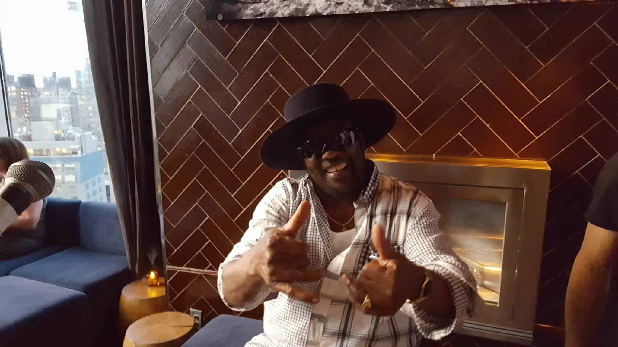 The lounge opened at 5 p.m., but the main event didn’t start until later. While waiting for the main event, the guests drank at the bars, socialized on the deck, or danced to reggae music, curated by Rice & Peas. Rice & Peas is a Caribbean themed group composed of local New York City DJ’s like Max Glazer, Gravy, Orijahnal and MC Micro Don. Around 6 p.m., it began to raining heavily; around 7 p.m., the sun appeared only to disappear again an hour later by the rain. The rapid change made the crew set the stage three times throughout the night, but this didn’t stop the spirit of International Reggae Day. While the crew was setting up the third time, for the main event, Toots arrived and sat next to me. This window gave me a great opportunity to interview him.