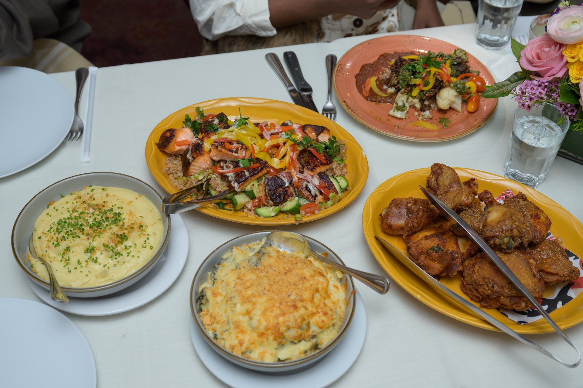 Let’s start with the food, because it deserves its moment. The table was stacked: tender collard greens, deviled eggs with just enough bite, crispy fried chicken that did not come to play, and rich, creamy mac & cheese that felt borderline emotional. Then there was the salmon, and, as always, it was perfectly done, balancing things out just enough so we could pretend we were being responsible. It was giving comfort, it was giving Harlem, and most importantly, it was giving “no one is leaving hungry.”