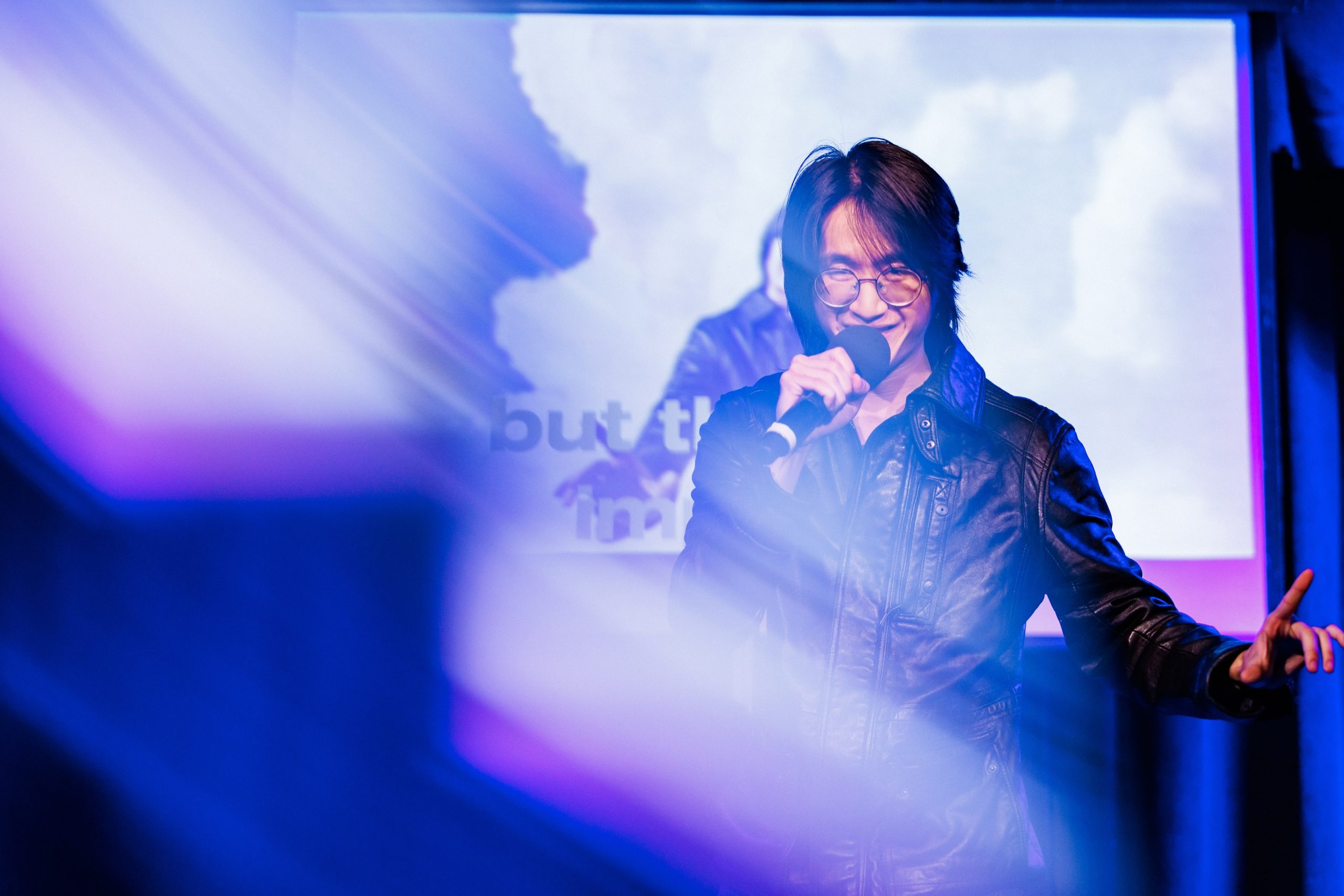 Then Blake Ung took the stage, a music video of himself playing behind him. He kicked off his stand up set with an original song about why very attractive asian women date average looking white men. It’s worth noting that Ung himself is asian. It’s also worth noting that the crowd was bursting out laughing over his declaration. Ung continued his stand up set with some prepared jokes. He also used voice recording buttons, interacting with the audience then ended his set with another original song about queer baiting. He did strip off his leather jacket, leaving him shirtless for a majority of his set, keeping in line with burlesque theme.