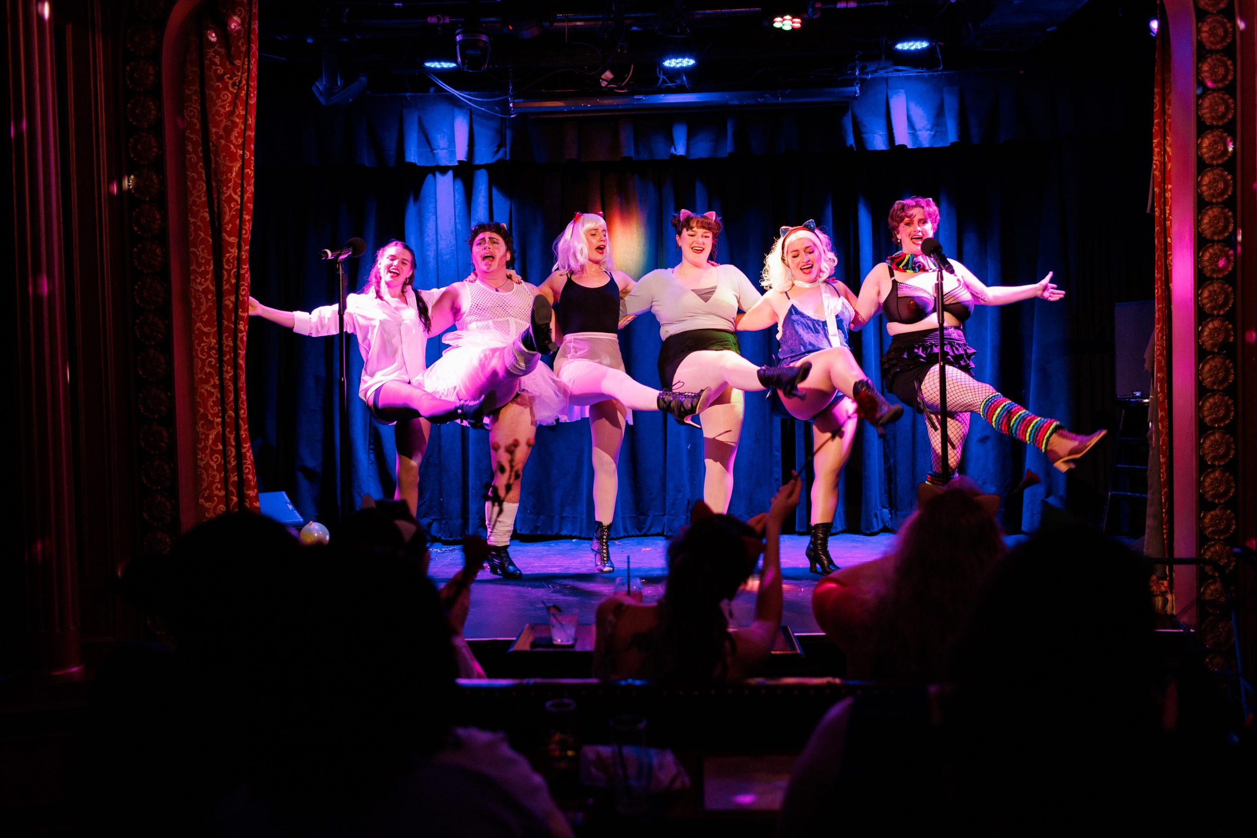 The Upper West Side’s Triad Theater filled with excited patrons ready to kick off their weekend. The dark red painted theater was adorned with a disco ball hanging in the corner and fog machines creating ambiance. Sequined cat ears topped each table for guests to wear. A wink at what was to come this evening.