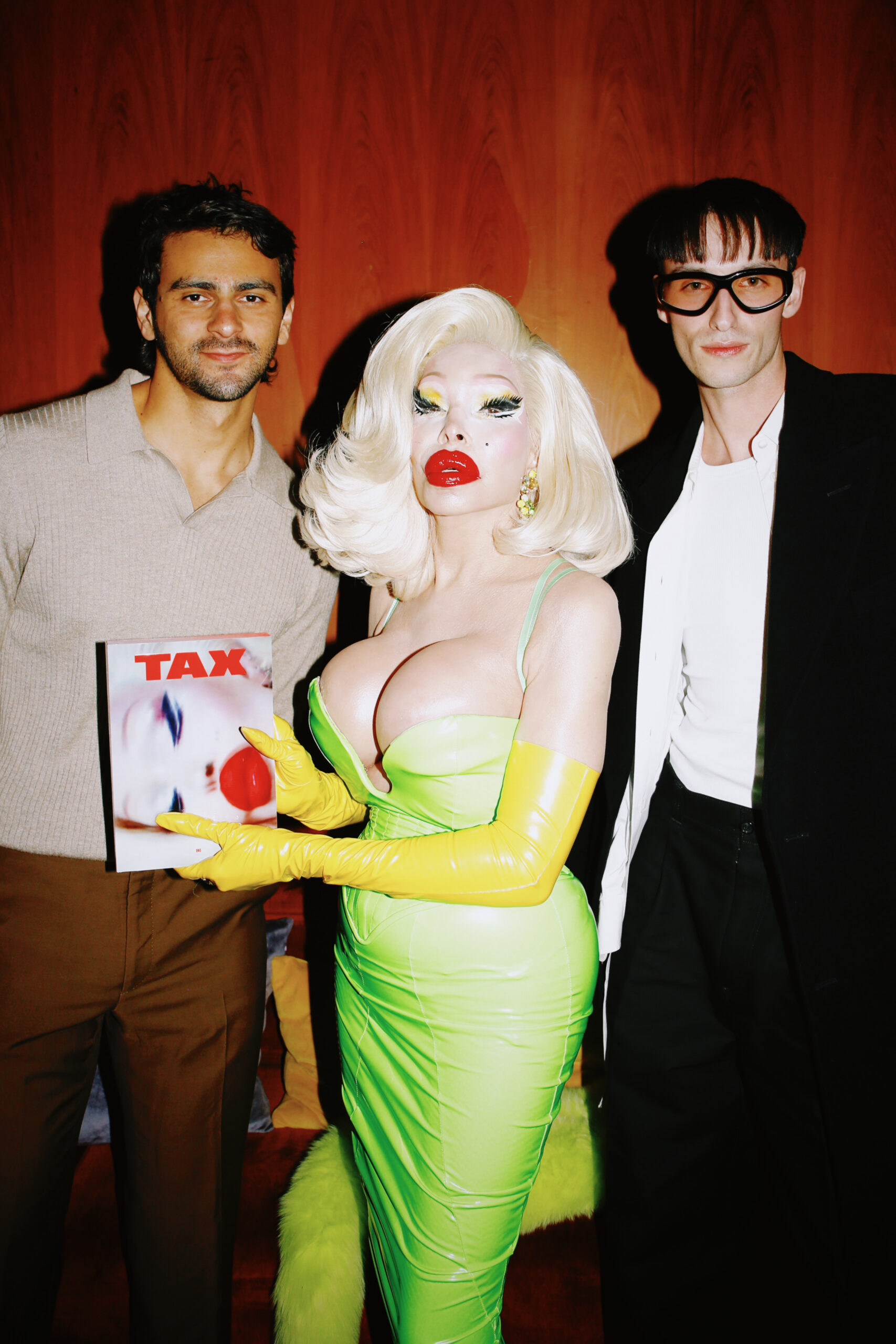 The New York launch came first, followed by an L.A. event the next night. The pace felt right for TAX: fast, global, and slightly chaotic. Inside the warm wood-paneled space, the crowd filled out quickly. Peter Do and Amanda Lepore, both featured in the issue, anchored the night. Lepore arrived in a neon-lime latex dress and yellow gloves that shimmered under flashbulbs while Do kept it understated, moving through conversations with quiet focus, talking about the issue’s evolution and the publication’s widening reach.