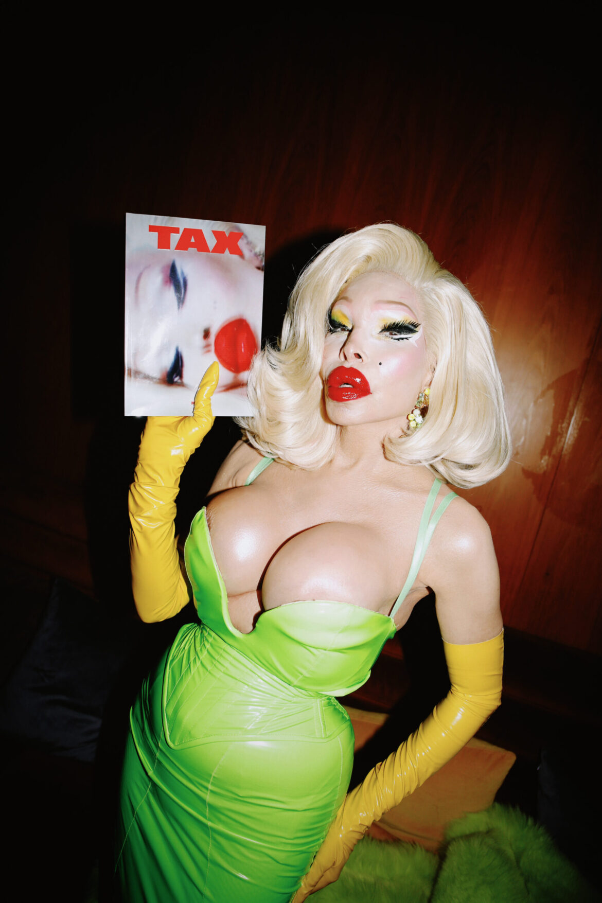 The New York launch came first, followed by an L.A. event the next night. The pace felt right for TAX: fast, global, and slightly chaotic. Inside the warm wood-paneled space, the crowd filled out quickly. Peter Do and Amanda Lepore, both featured in the issue, anchored the night. Lepore arrived in a neon-lime latex dress and yellow gloves that shimmered under flashbulbs while Do kept it understated, moving through conversations with quiet focus, talking about the issue’s evolution and the publication’s widening reach.