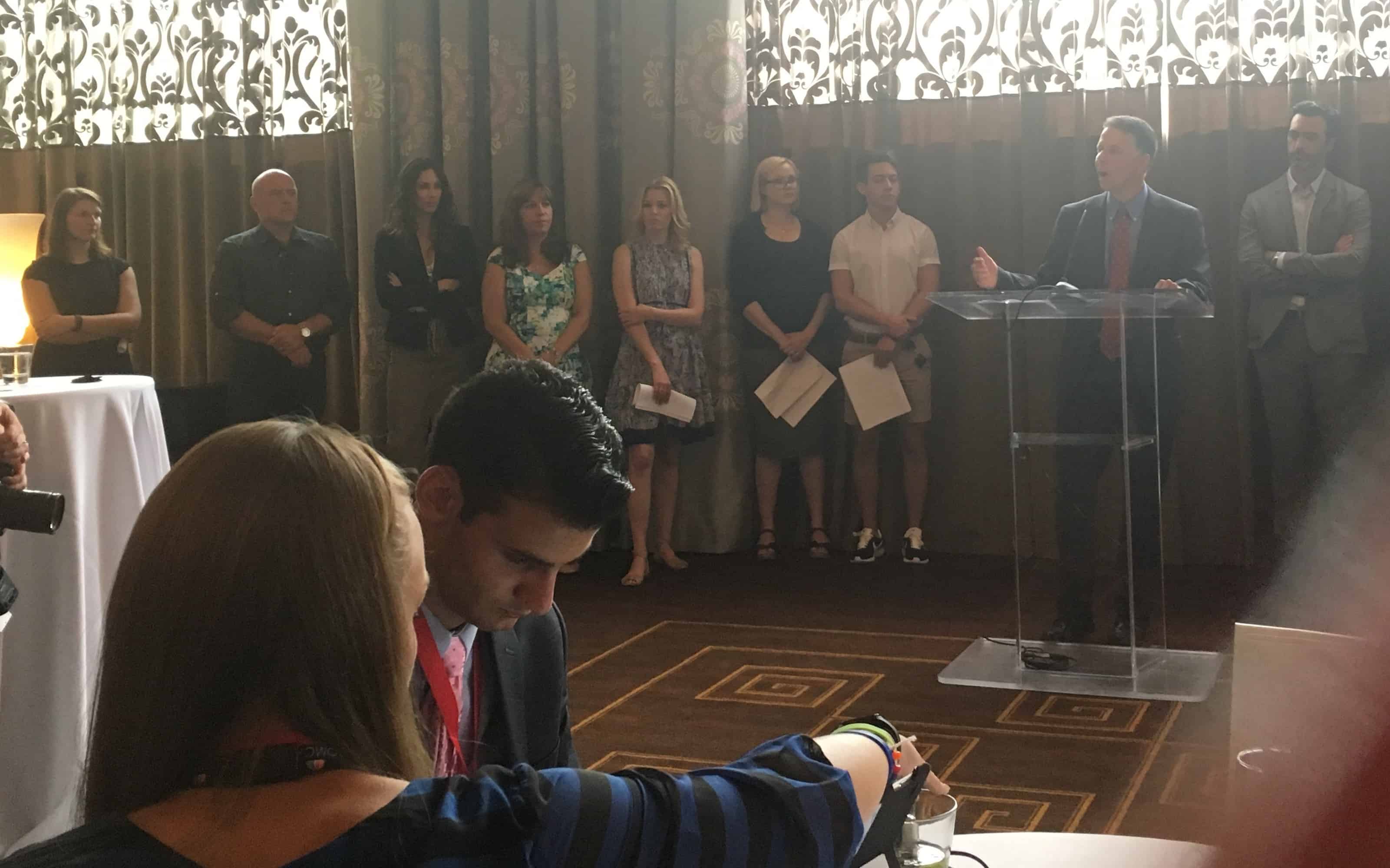Celebrities present included David Schwimmer (Friends), Elizabeth Banks (Pitch Perfect), Kevin McHale (Glee), Troian Bellisario (Pretty Little Liars), Dean Norris (Breaking Bad), Josh Gad (Book of Mormon), and Alison Pill (The Newsroom).