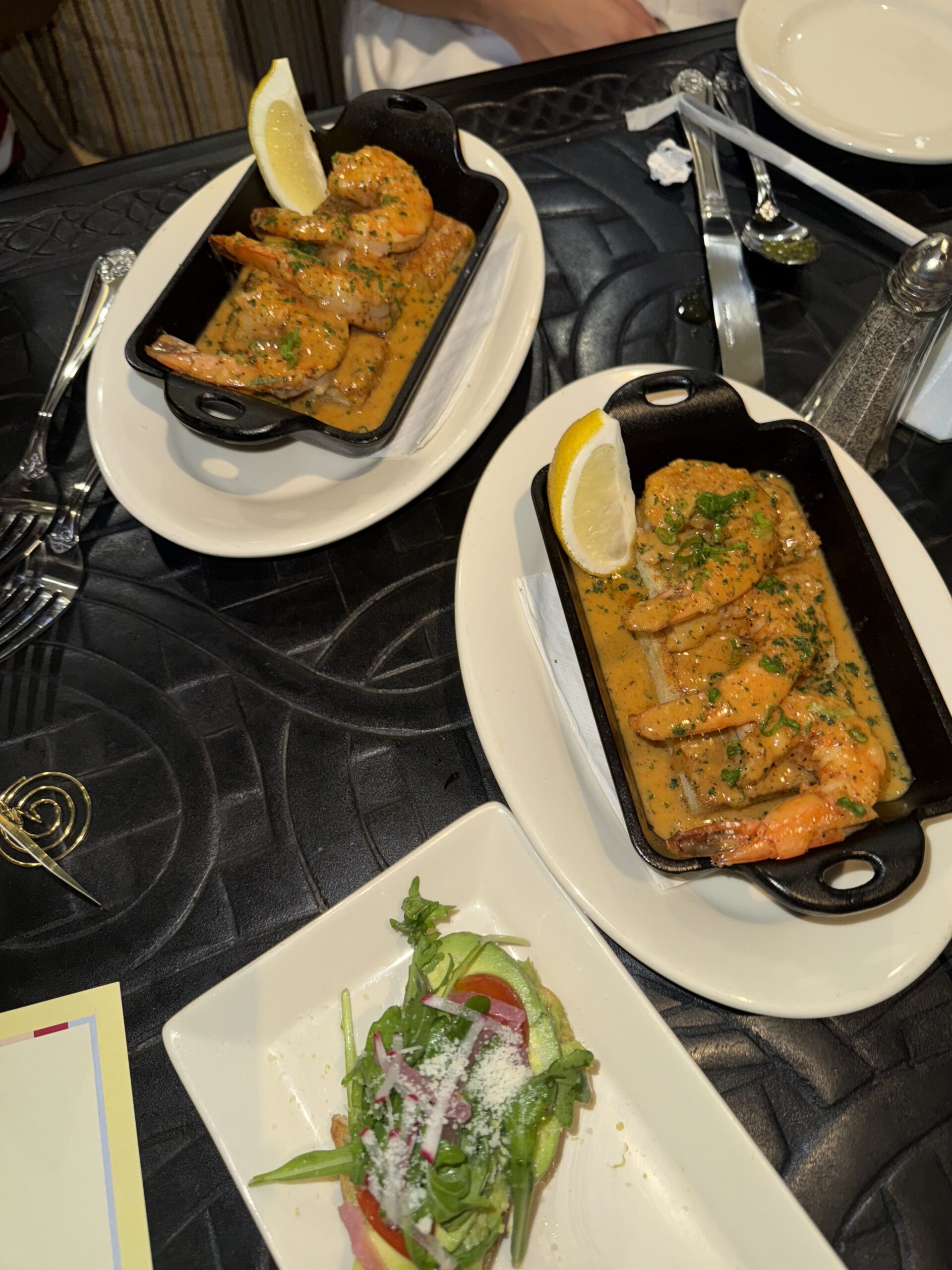 Spice lovers should indulge in the New Orleans Creole Shrimp. As savory as it gets, this flavorful dish is drenched in sauce begging to be sopped up with the buttery, toasted bread bed in true NOLA fashion.