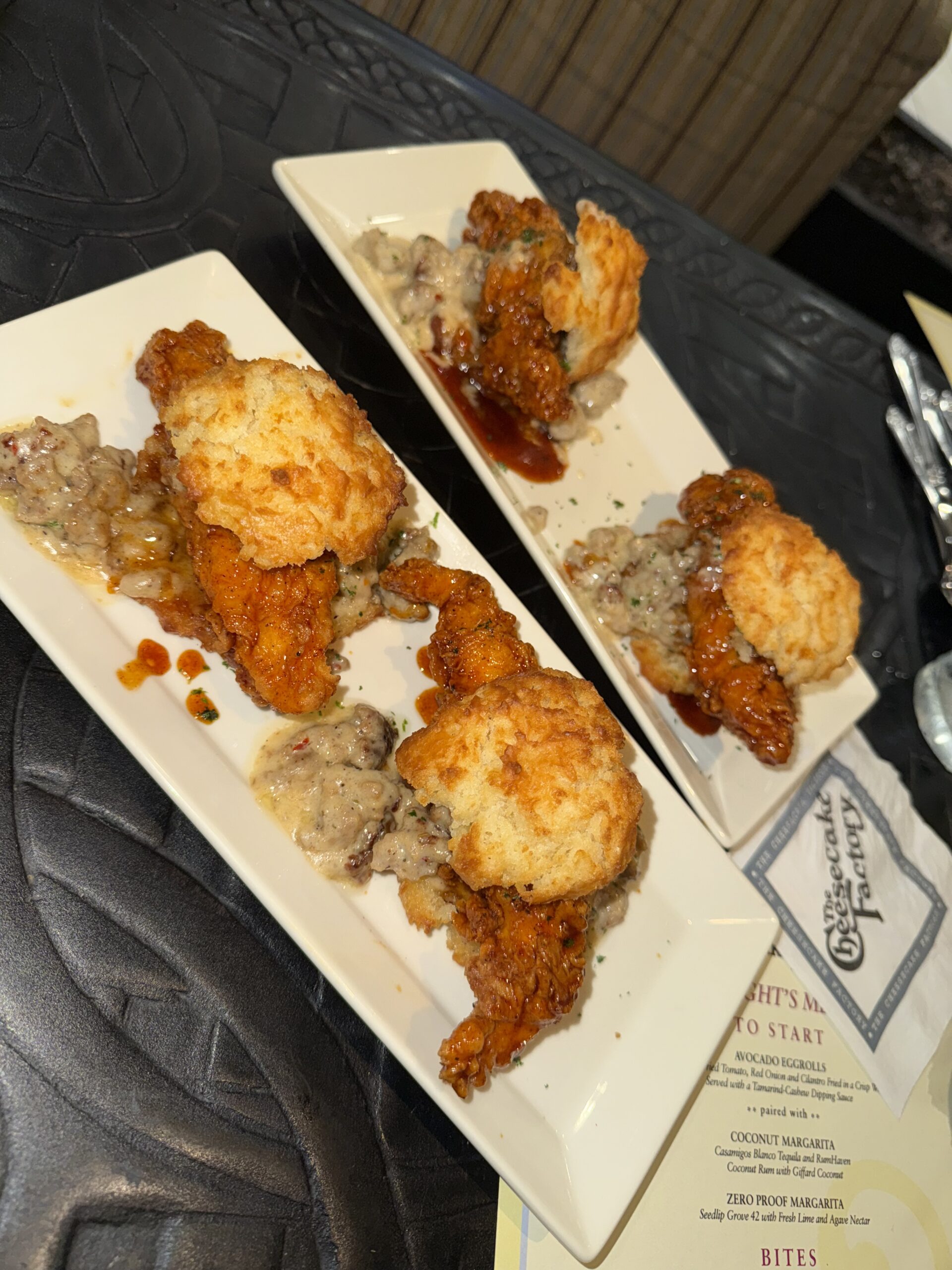 Honorable mentions include the addicting Parmesan Truffle fries— hotter and crispier than their regular fries— and the Chicken and Biscuits with gravy and hot honey, the perfect shareable and as hefty as an entree.