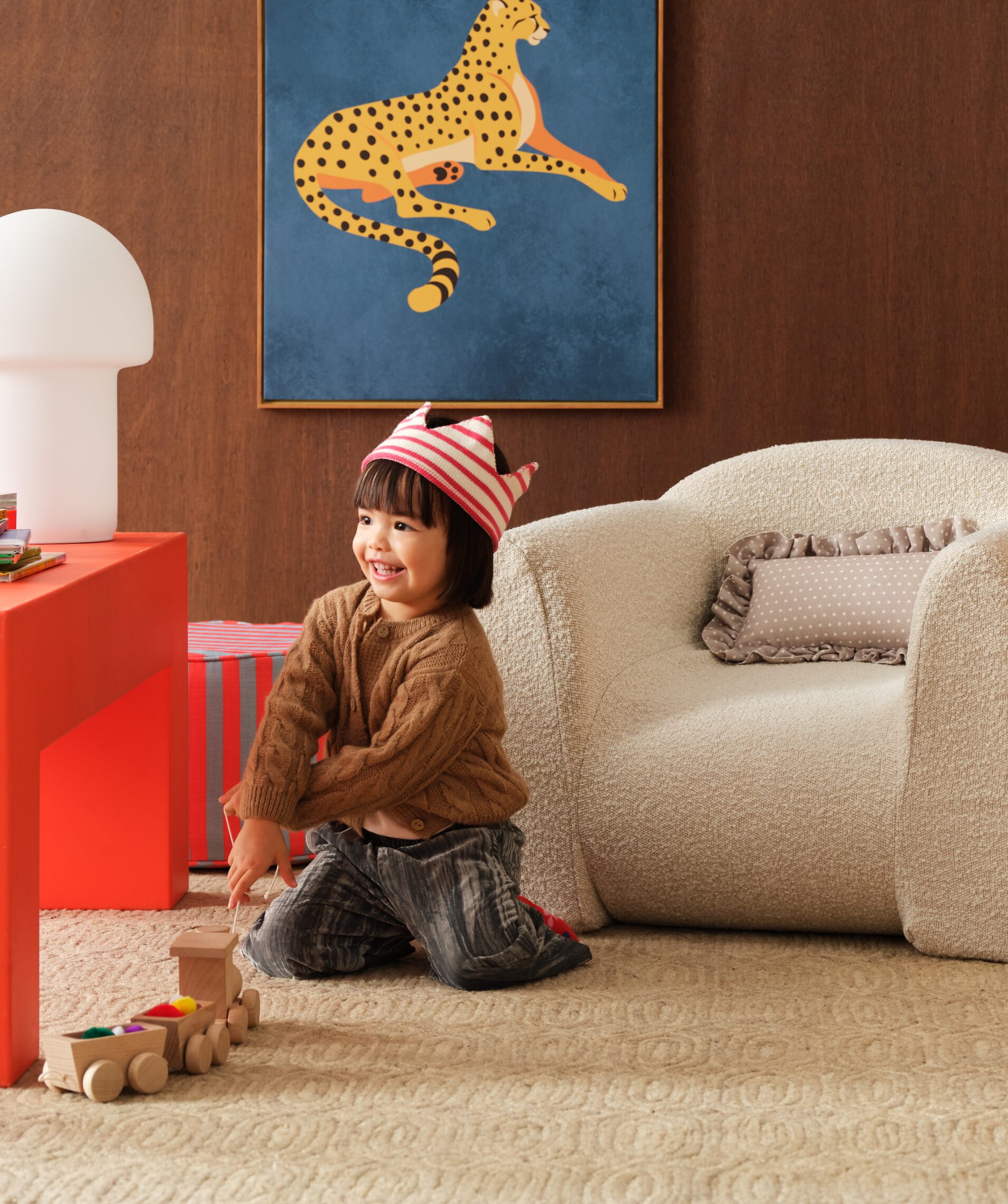 It is a structured silhouette with soft, supportive foam, which gives little ones a cozy, independent space of their own. And it is also made from non-toxic materials, so it looks good in the modern home while taking into consideration what makes for a healthier environment for the whole family. It’s a perfect way to spend time with your child or let them have their own adventure at playtime. Select from 16 color options and new seasonal designs like gingham, minimal grid, and luxe bouclé. For more information, please visit HERE.