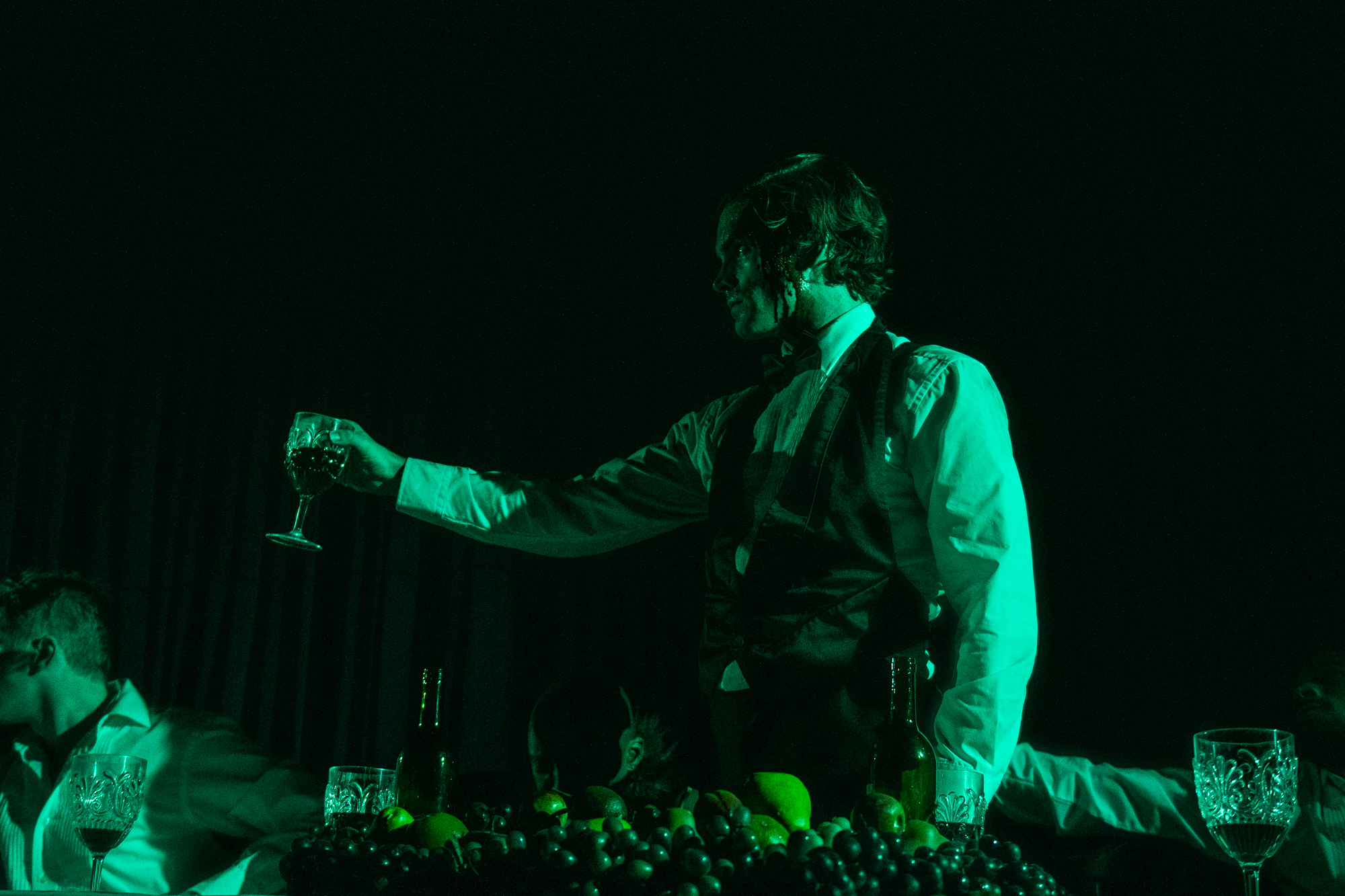 The next few hours we wandered from room to room and floor to floor bearing witness to a phantasmagoria of eerie vignettes. Figures leapt and danced, cried, made love, fought, and shouted before whisking themselves off to other rooms, all while we guests gazed on, mute specters, privy to the wild passions of a bygone age. Classic jazz wafted through the hotel as if from an old-fashioned radio but with undertones of a dark synthetic drone that swelled to a discordant chorus whenever the action got particularly diabolical.