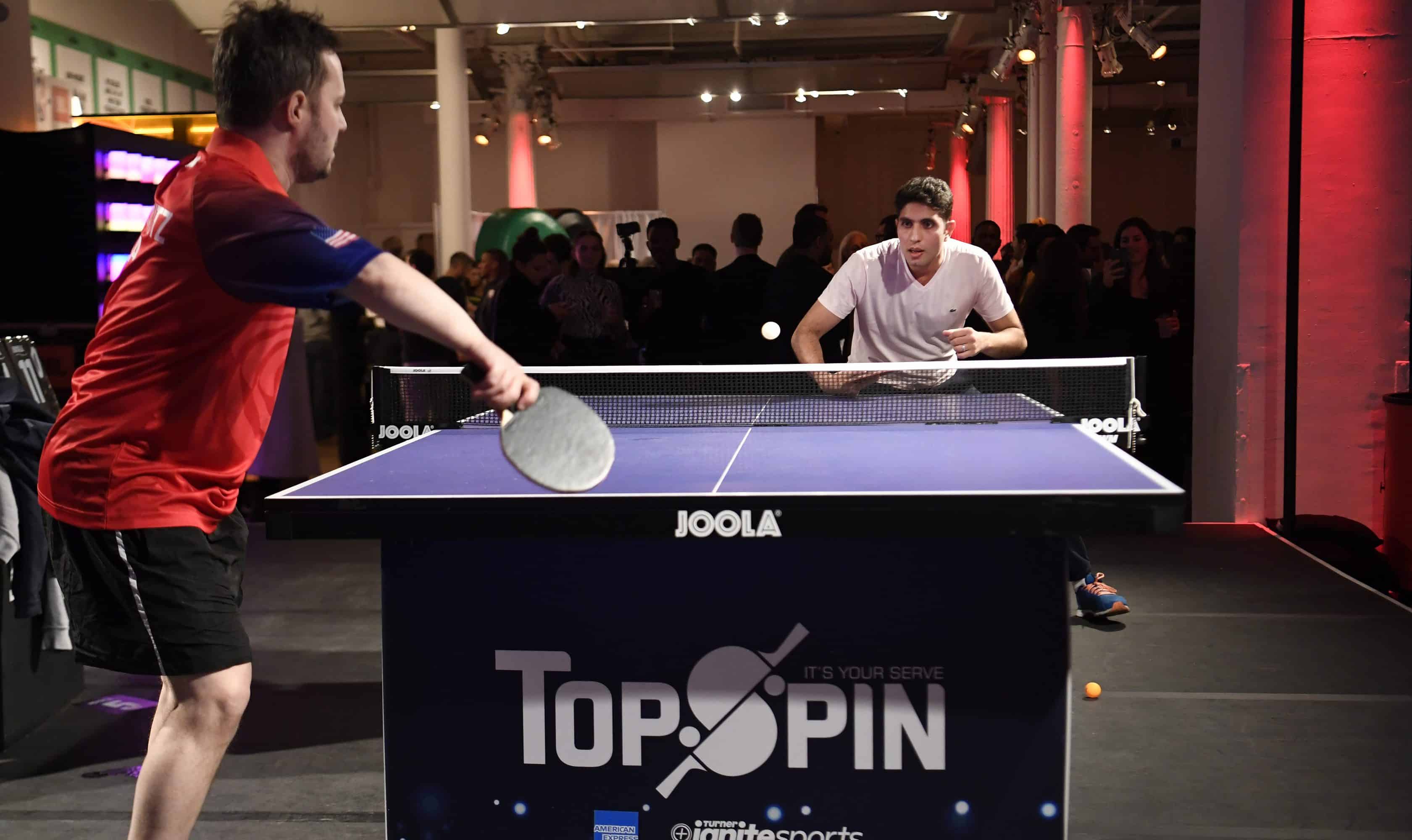 After delicious bites, tasteful drinks, and the auction, the tournament began. Excited guests gathered around one of two elevated stadium courts to watch a table tennis tournament for the books. A celebrity tournament featuring professional athletes and celebrities from New York City took place first, followed by the professional division highlighting eight players from USA Table Tennis. Winners of each division received a JBL Charge 3 Bluetooth speaker. The eventβs MC Ryan Wooard kept the tournament fun and pumped with a high energy the whole night long.
