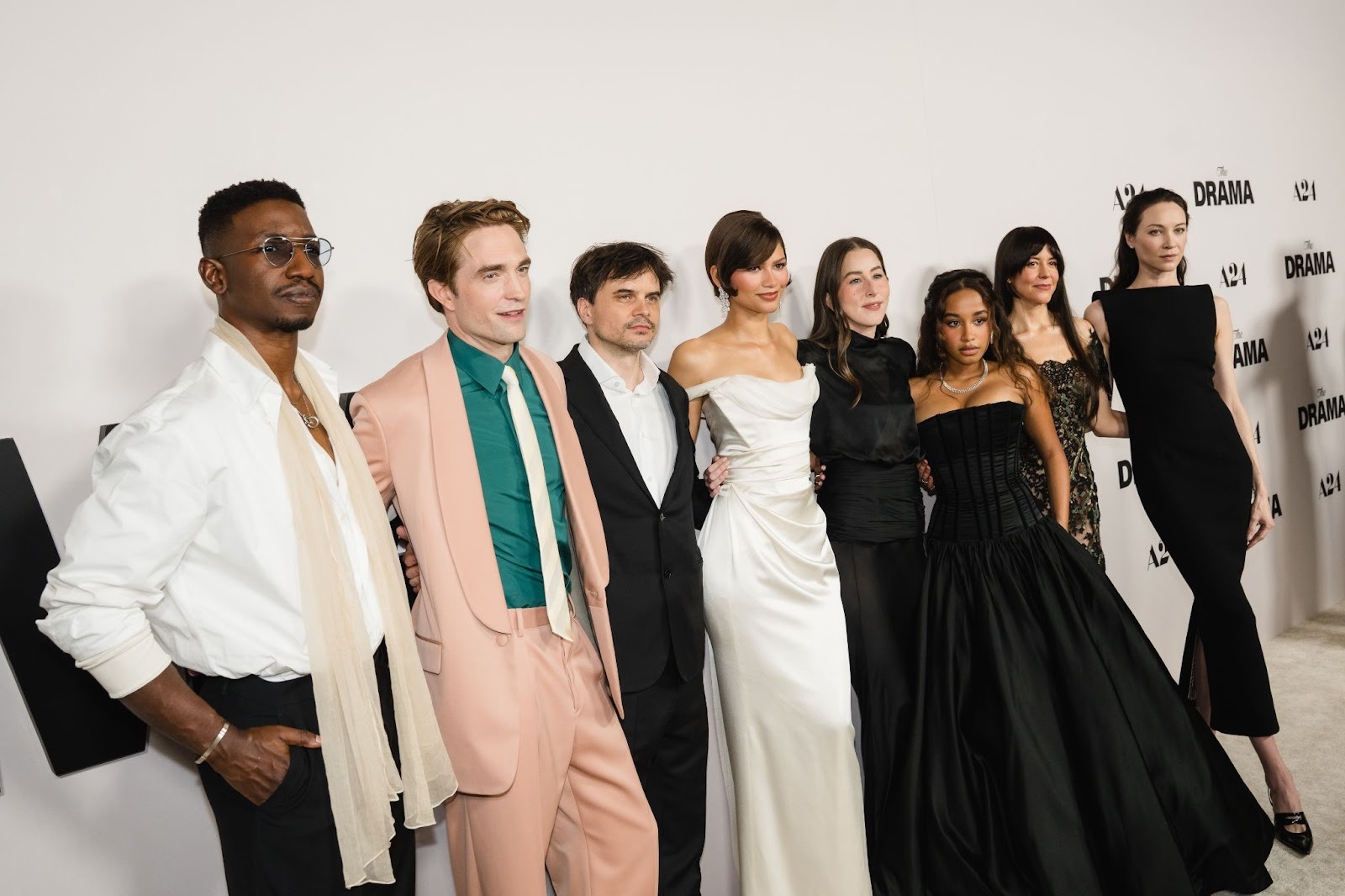 Mamoudou Athie, Robert Pattinson, Kristoffer Borgli, Zendaya, Alana Haim, Jordyn Curet, Zoë Winters and Sydney Lemmon (L-R) at the Los Angeles Premiere of “The Drama.”